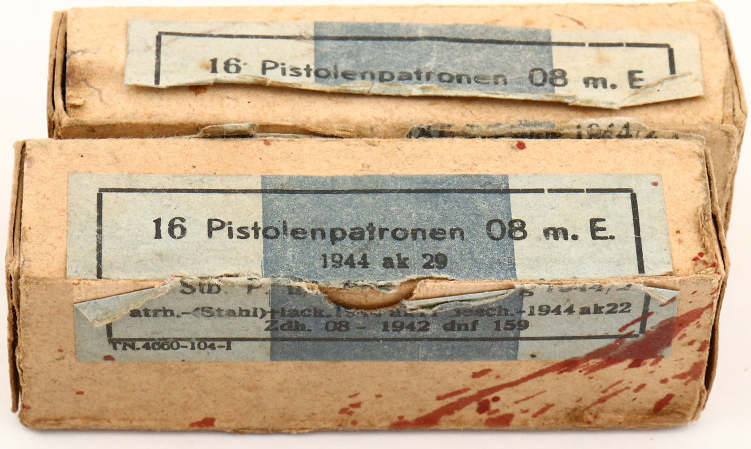Lot of Two military ammo boxes, 9mm, all Full, ammo is very good. Grade: Very Good ++ - Value: 10 to 30