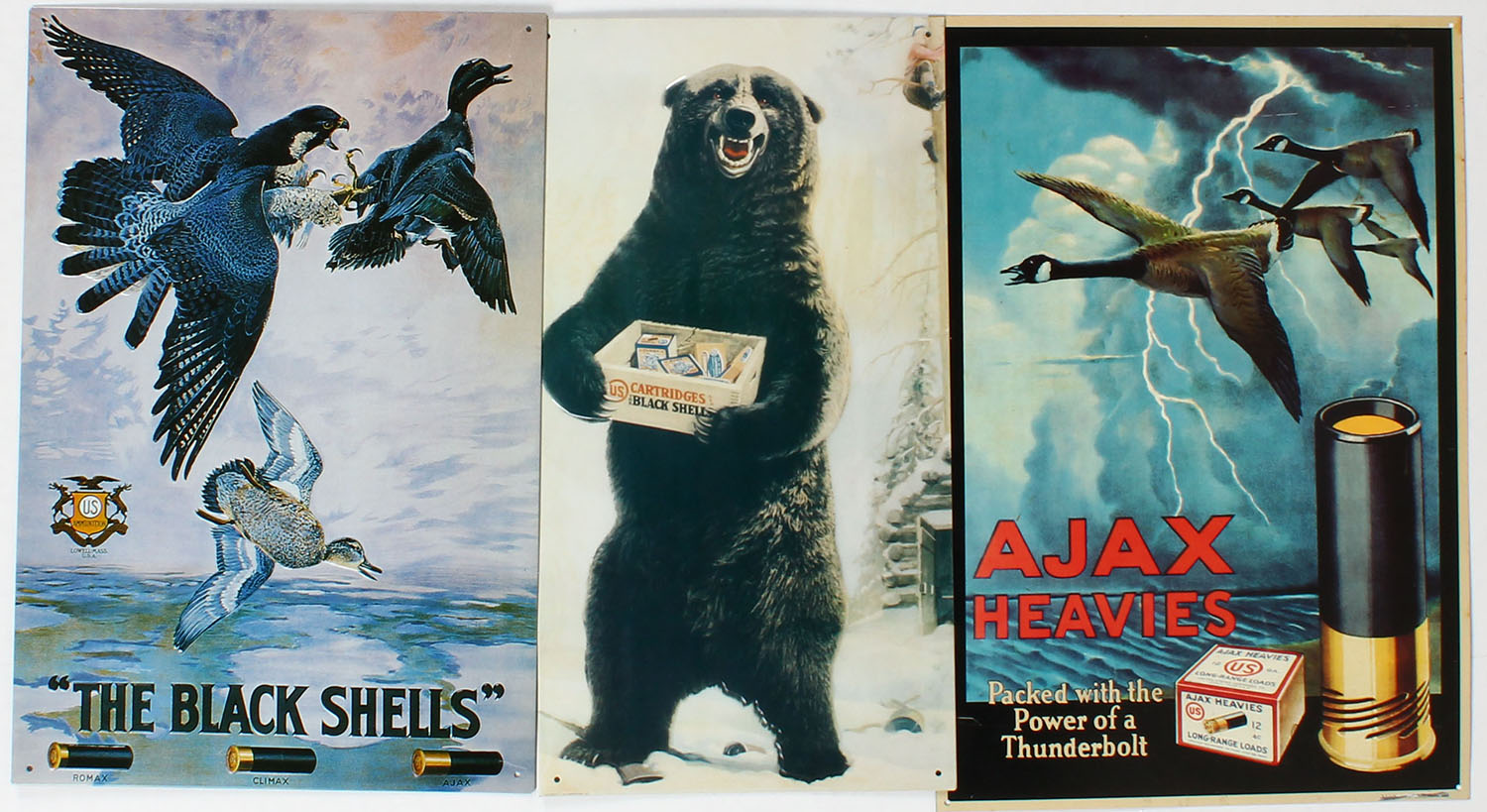 Lot of 3 modern metal signs. Grade: Excellent ++ - Value: 6 to 30