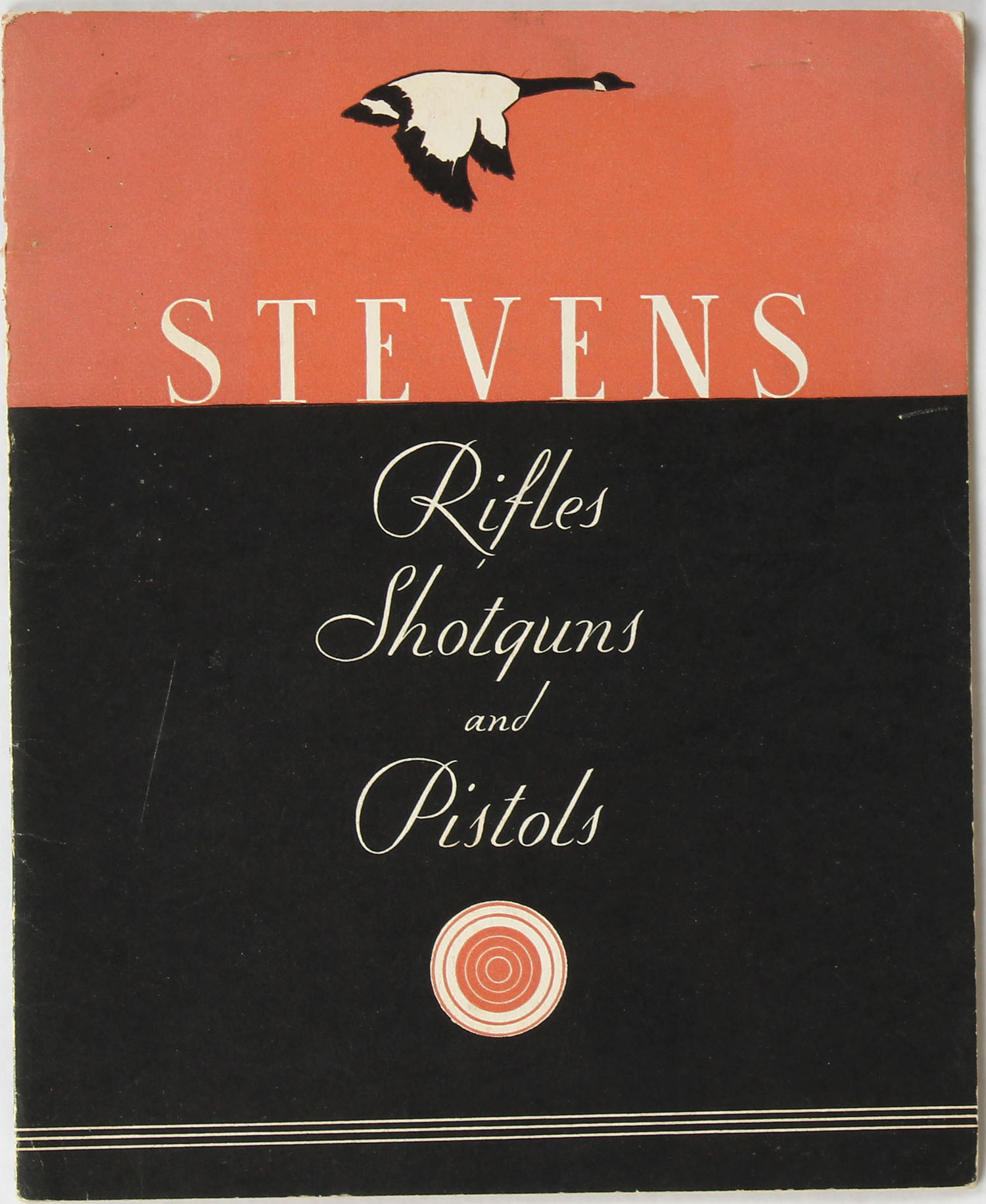 Stevens Rifles, Shotguns and Pistols Catalog, many colored images of guns, 24 pages, 7 3/8'' x 9''. Grade: Excellent + - Value: 20 to 80