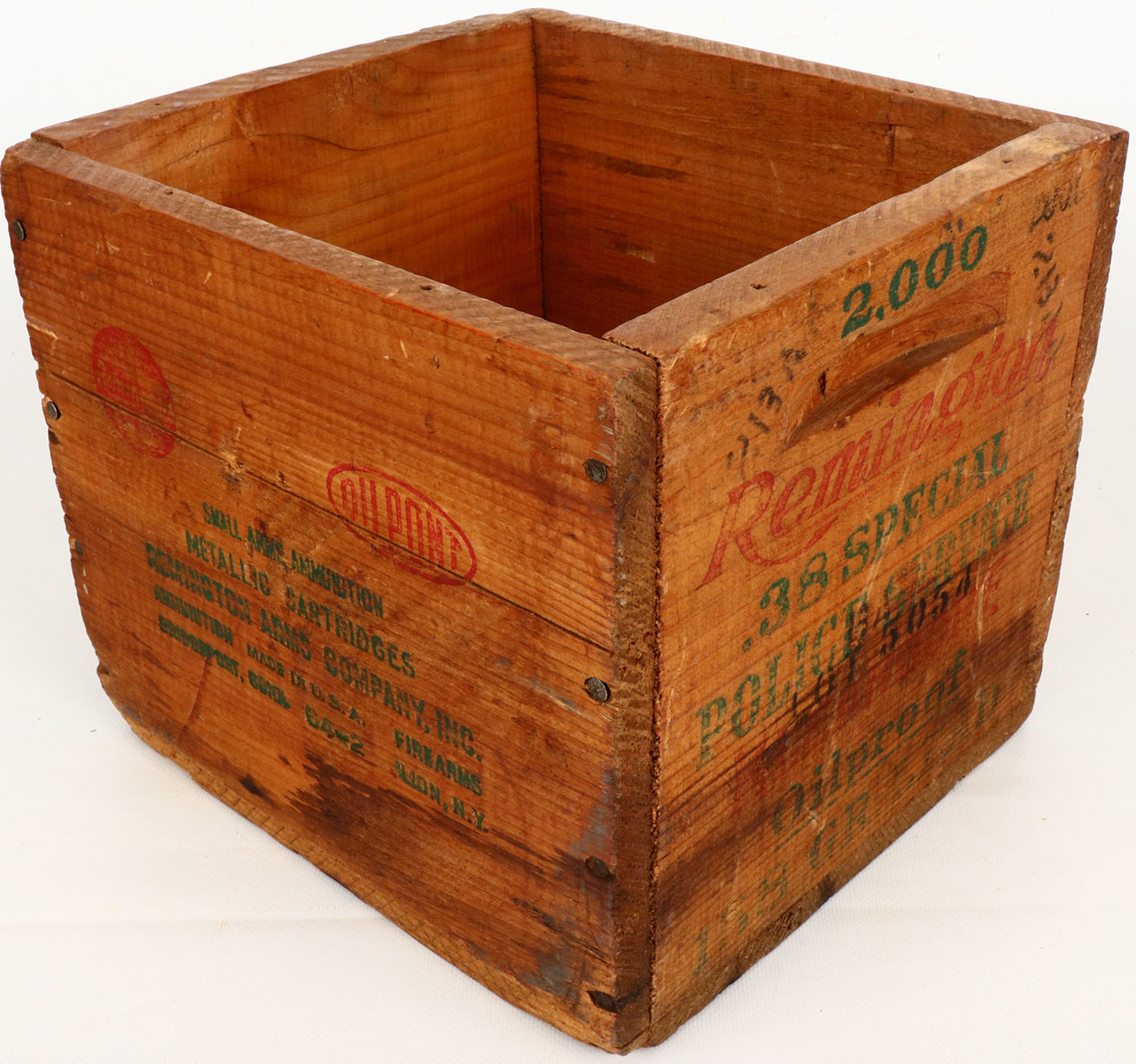 Remington 38 Special, nail construction, red, & green print has fading, crate has some age soiling spots. Grade: Very Good - Value: 10 to 50