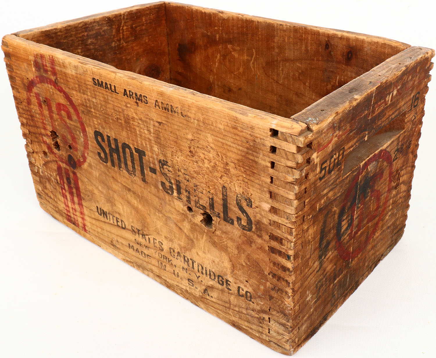 US Defiance 16 ga., tongue and groove construction wood shipping crate, red & black print is faded, crate has age soiling. Grade: Very Good - Value: 10 to 50