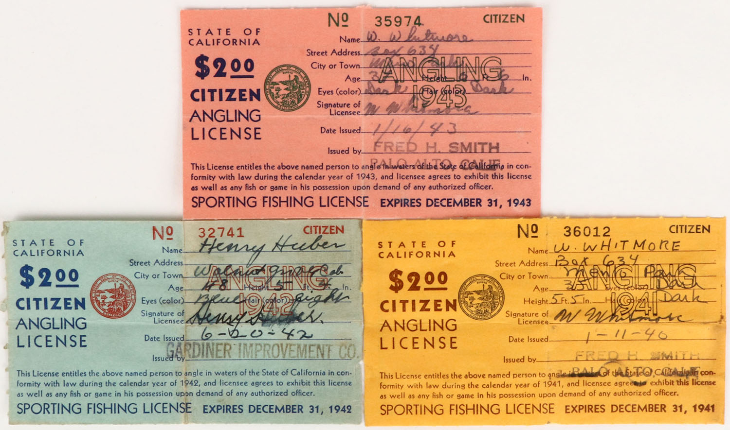 Lot of 3 California Fishing License. Grade: Excellent - Value: 2 to 50