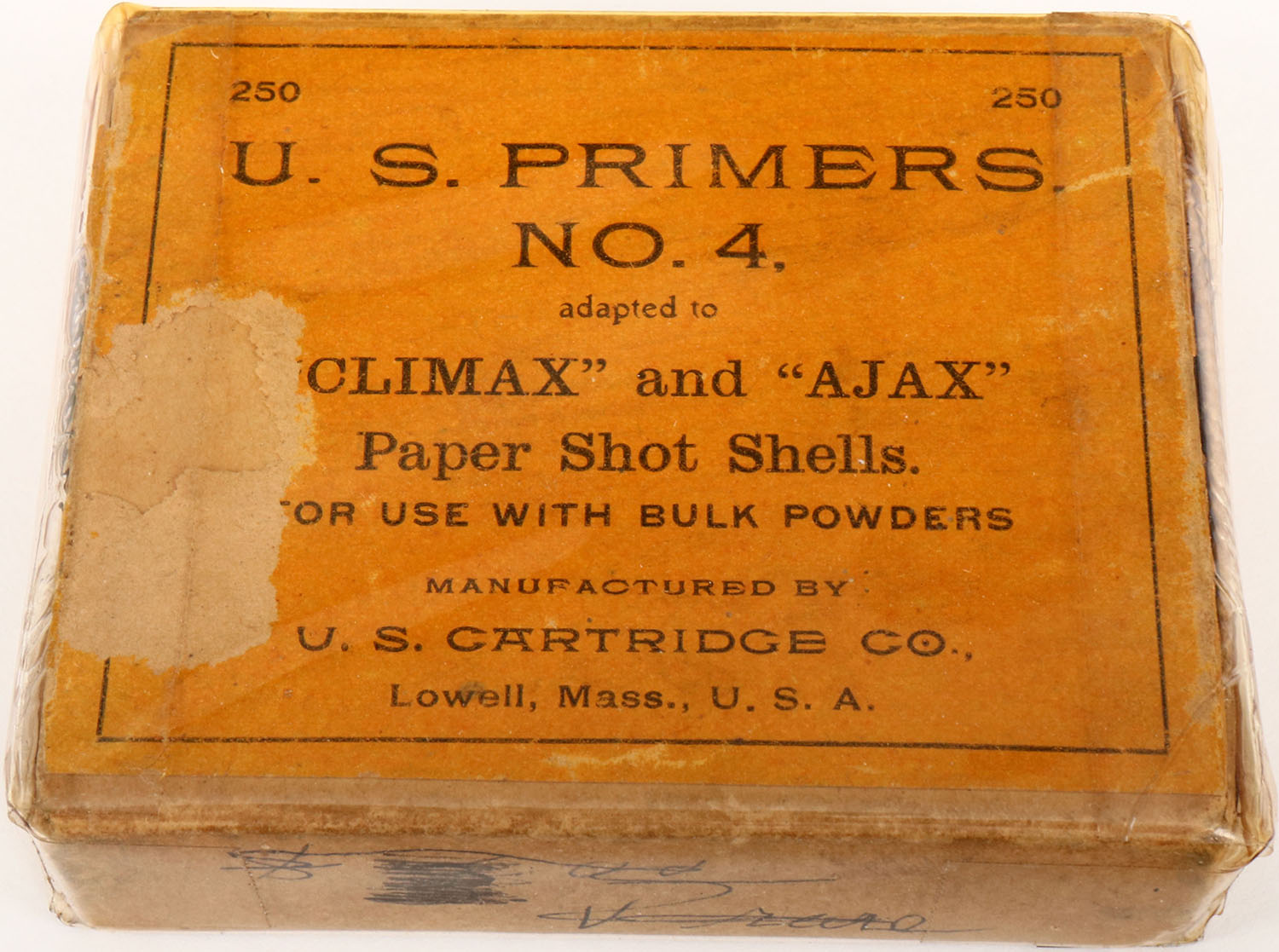 US Primer box, 250 count, Partial, some age soiling. Grade: Very Good + - Value: 2 to 40