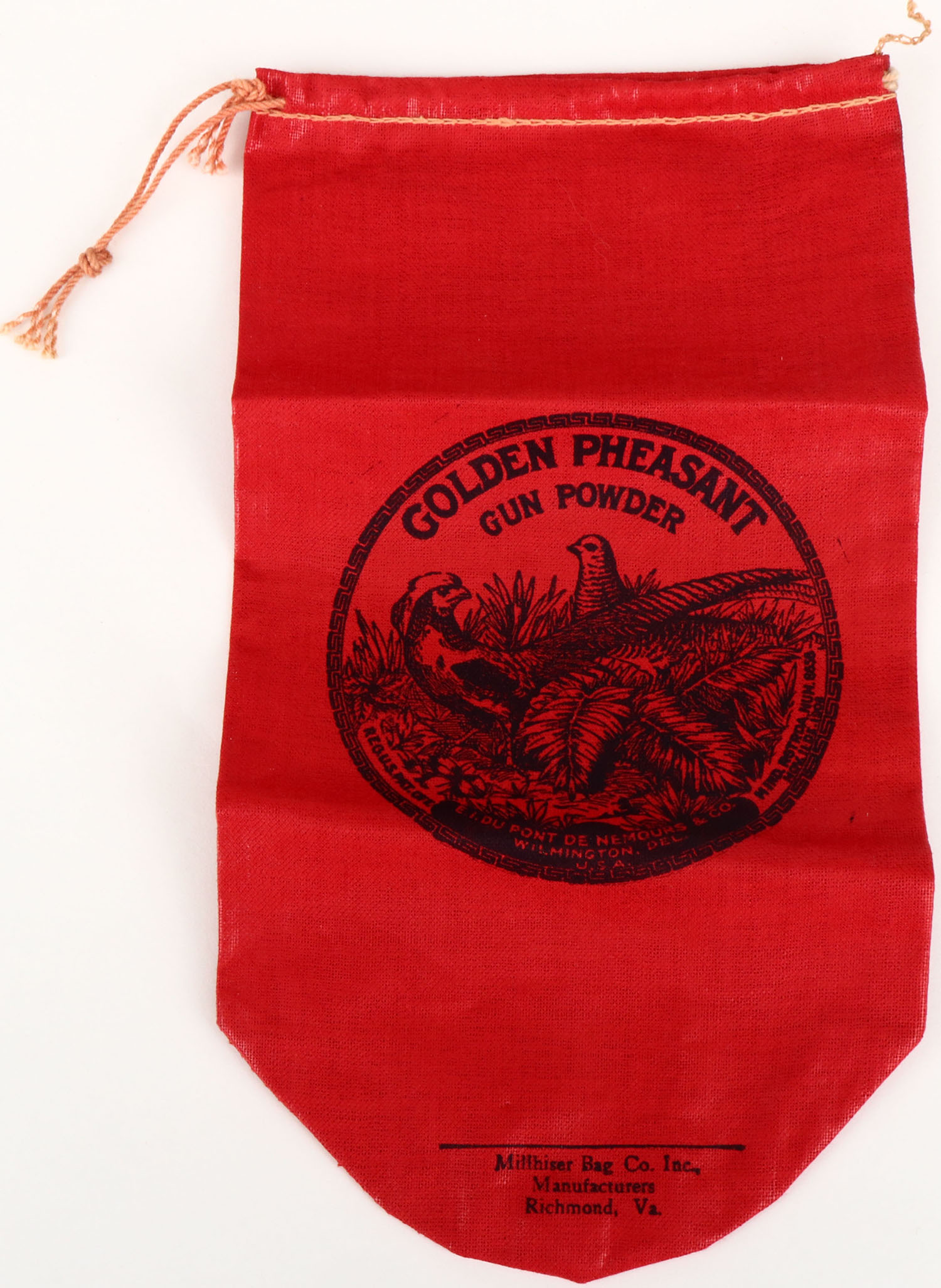 Golden Pheasant Gun powder bag, appear mint. Grade: Excellent ++ - Value: 10 to 100