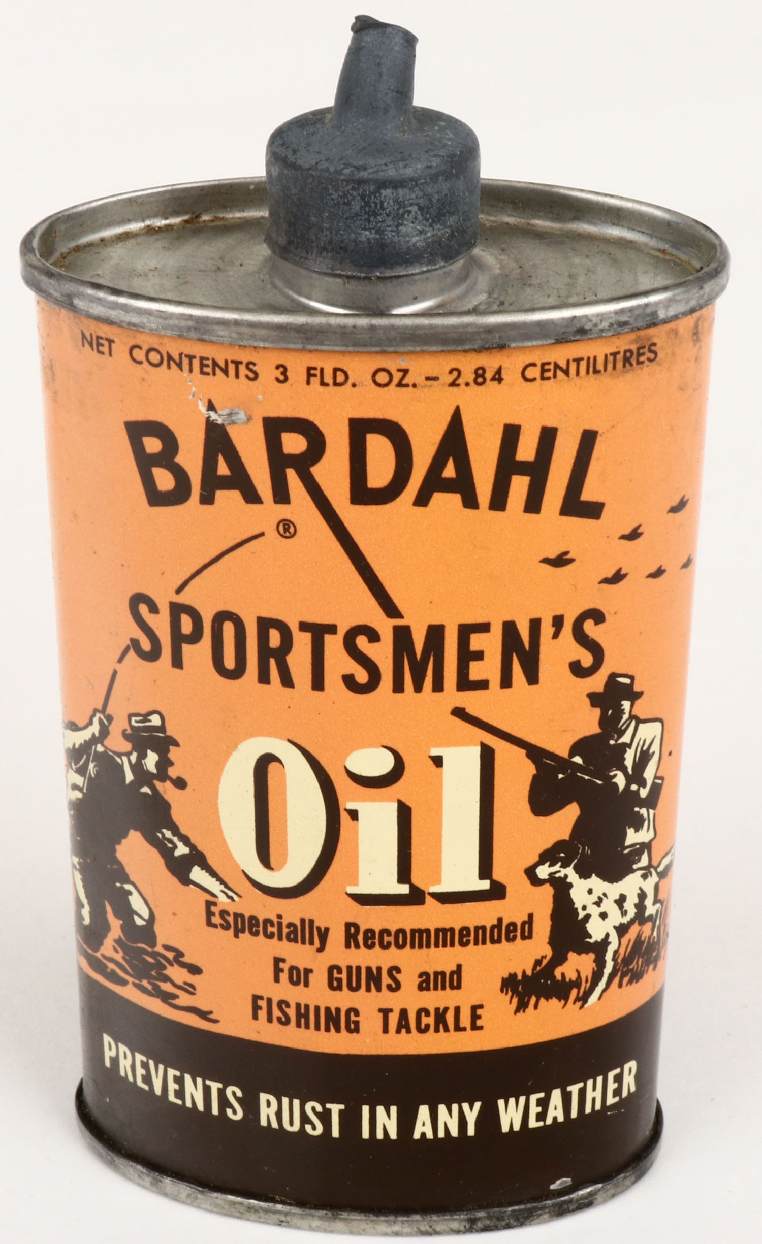 Bardahl Oil tin, has a lead top but no spout, empty, has age soiling, still solid. Grade: Very Good ++ - Value: 40 to 150