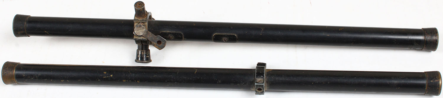 Lot of 2 Large rifle scopes, no markings, foggy view, scope has age soiling, crosshair reticle and post. Grade; Very Good - Value: 20 to 100