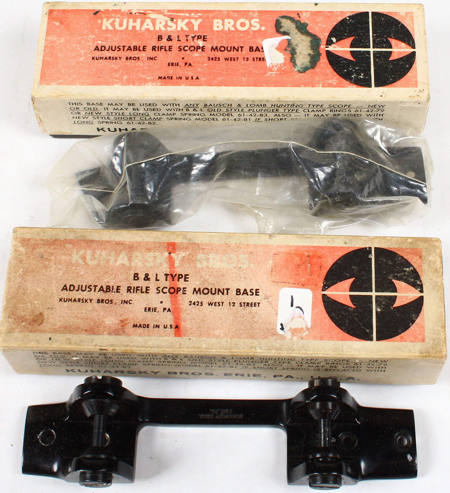 Lot of 2 Kuharsky Bros., B&L Type Rifle scope mount base, in orignal box. Grade: Very God - Value: 6 to 40