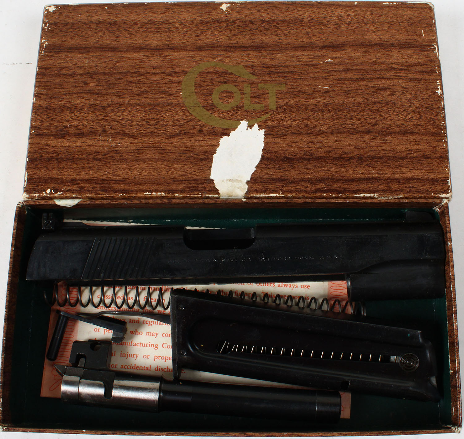 Colt conversion kit, 45/38-.22 cal., full and complete, has orignal box and paperwork. Grade: Excellent - Value: 50 to 500