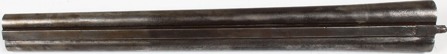 Shotgun barrel, side by side, 12 ga., 18 1/2'' barrel, appears to have been shortened, pitting to barrel, #14 on bottom, bore is poor, Grade: Good - Value: 2 to 100
