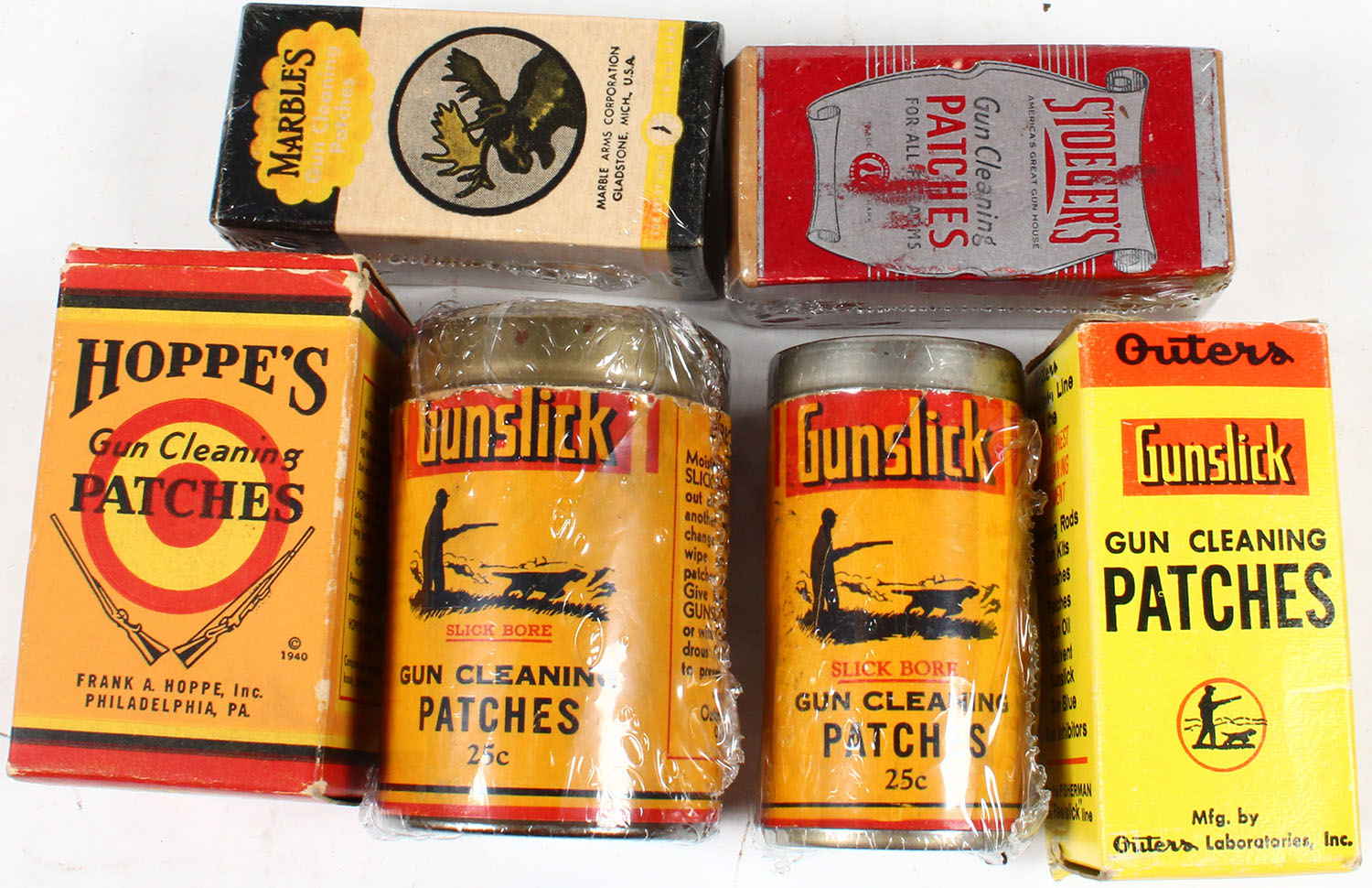 Large lot of gun cleaning patches, in original boxes. All Full. Grade: Excellent - Value: 4 to 40
