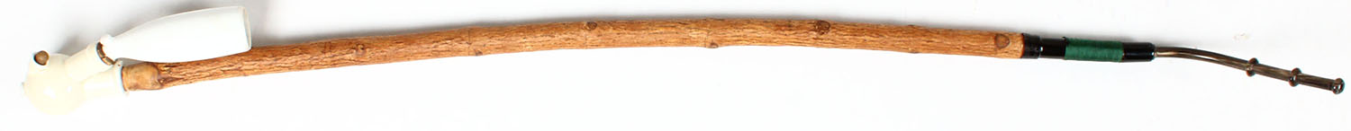 Antique German floor pipe, wood staff, porcelain bowl. Grade: Very Good ++ - Value: 2 to 100