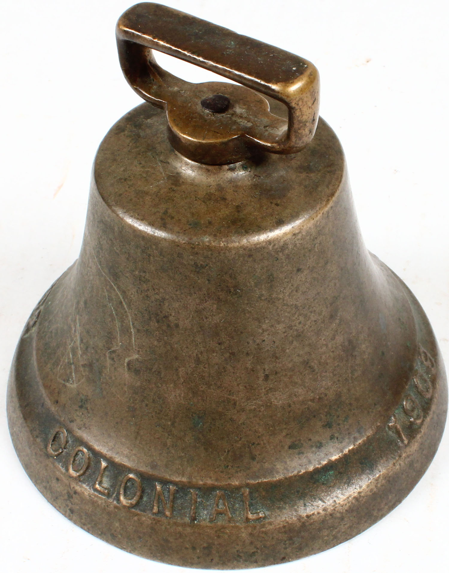 Bronze Bell marked ''1832 Colonial 1909 Colonial''. Grade; Very Good - Value: 20 to 200