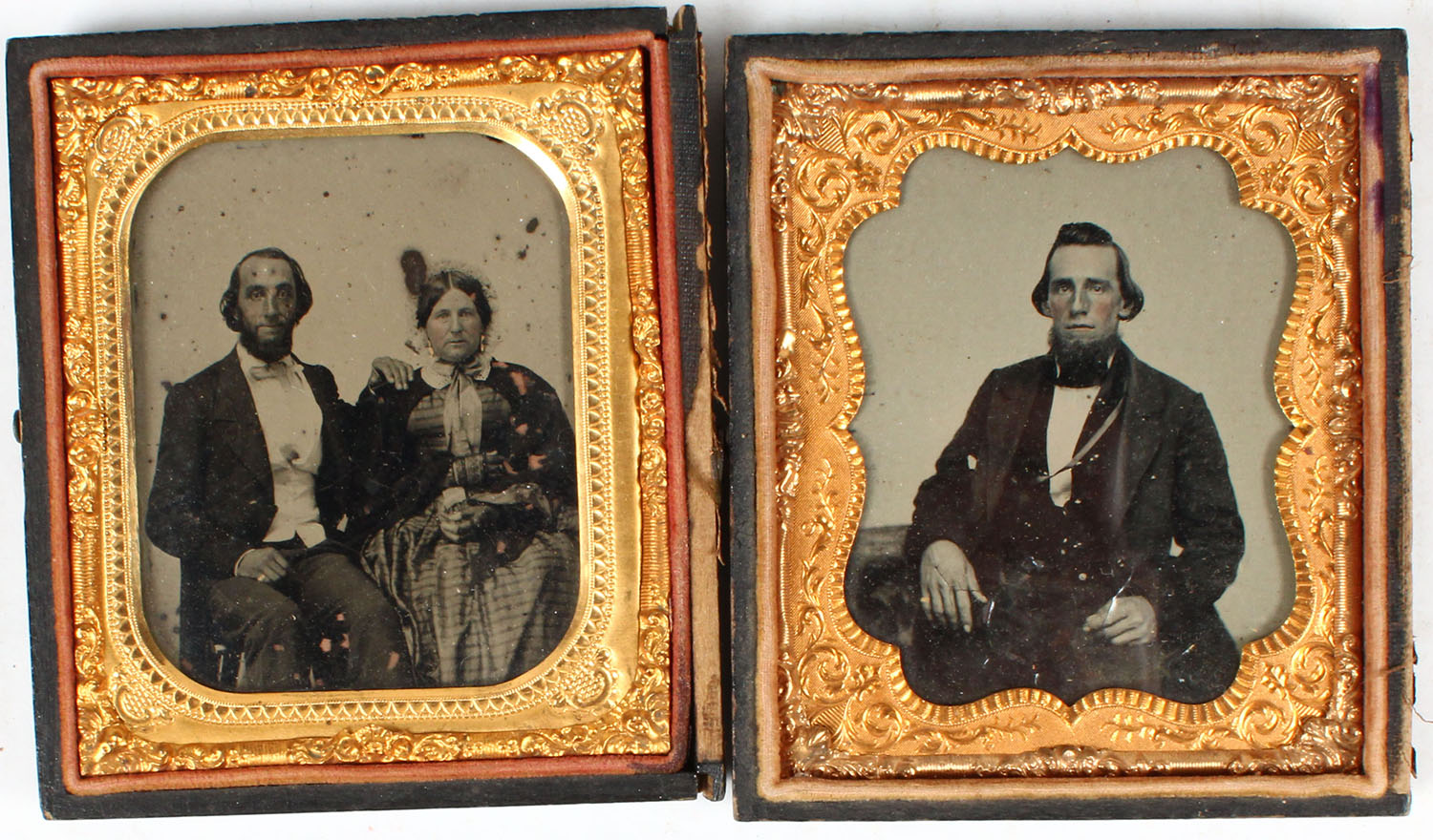 Two Civil War era tin type pictures in the original frames. Grade: Very Good - Value: 20 to 100