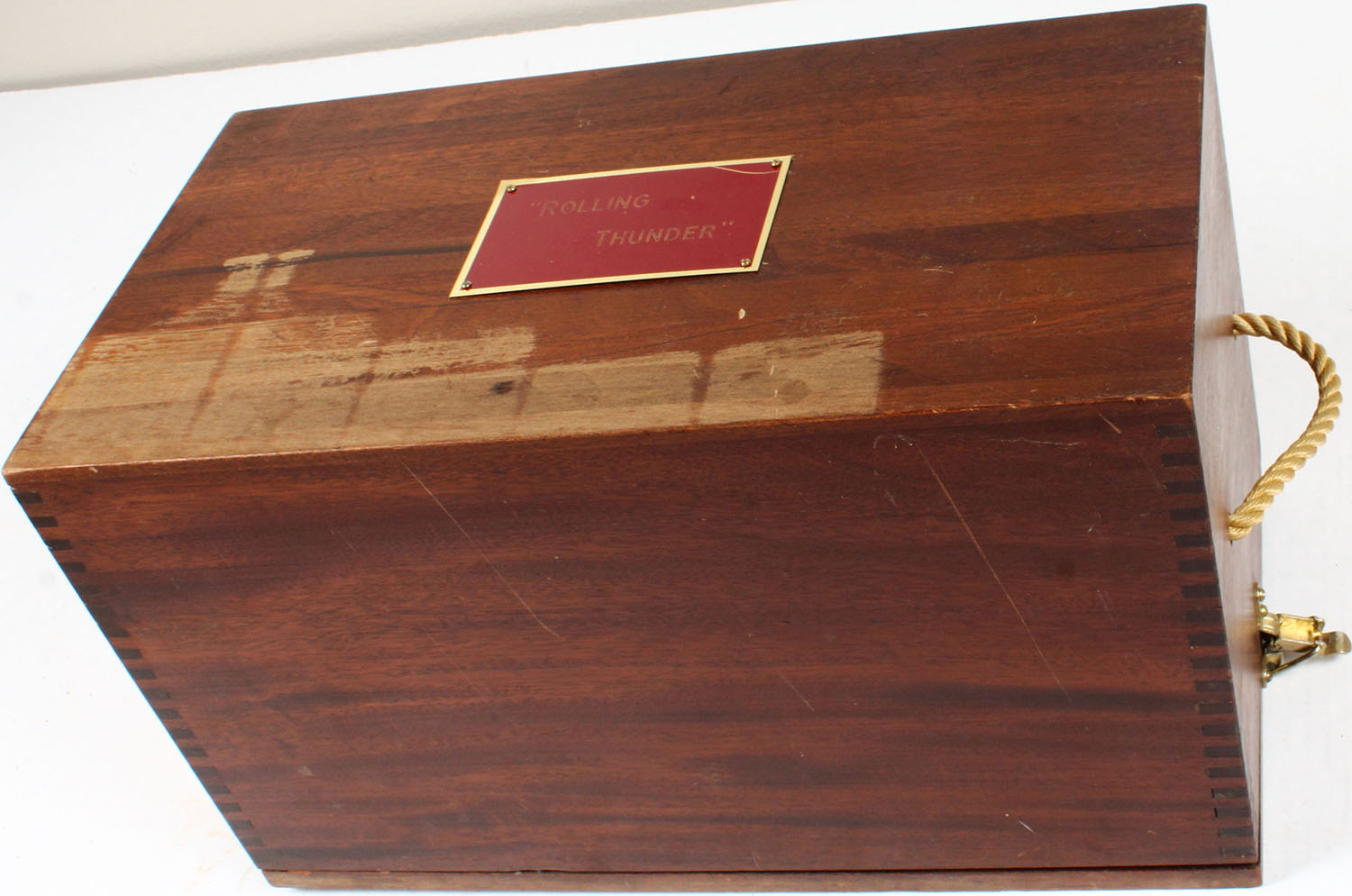 RARE! Bellmore Johnson Winchester 10 ga. Golden color Winchester Cannon, with wood box. Rubber wheels, #P 502, the famous Winchester Model 98 Breech Loading Signal Cannon was first offered in Winchester's 1903 catalog. It was described as: ''a breech loading cannon possessing safety, simplicity of construction, and ease of manipulation....'', The cannon is manufactured using the specifications from original Winchester blueprints. The barrel, machined from solid round bar, is mounted on a cast iron undercarriage that is cast using original patterns from Winchester. The barrel and undercarriage have a durable electro-coated finish, and the breech closure is hardened black. Very nice piece! Well marked, has some Winchester 10 ga. Blank shells, has some wear. Grade: Excellent - Value: 1000 to 2000