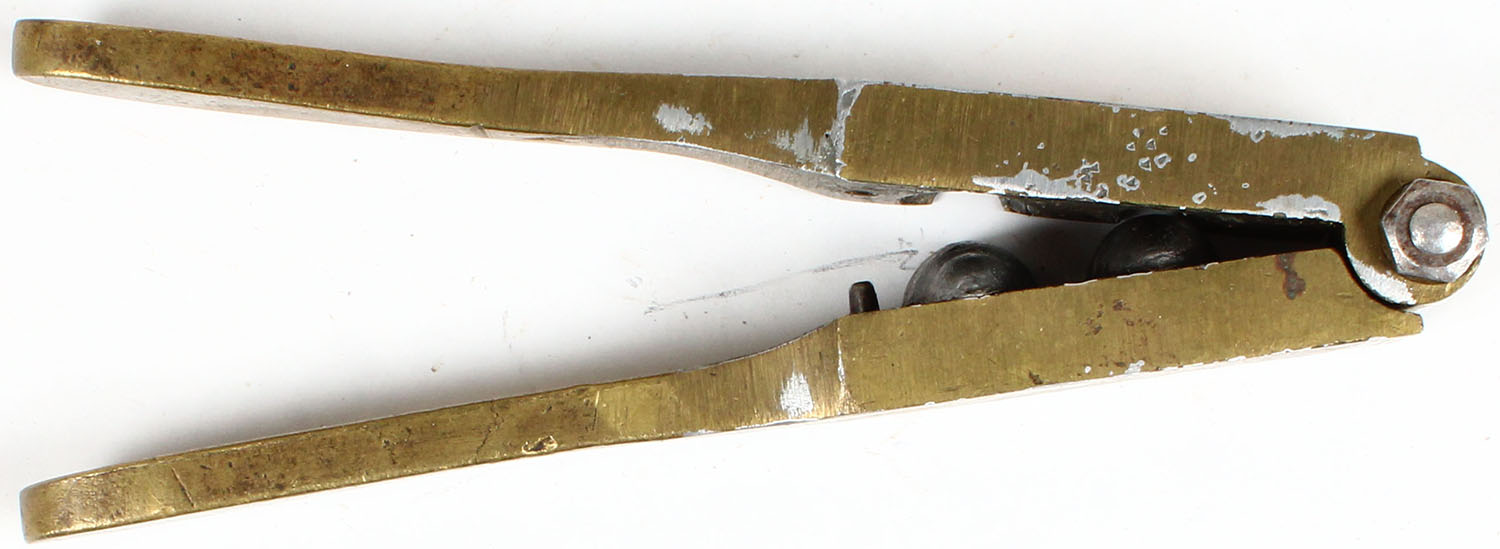 .44 cal. bullet mould probably for a colt Dragoon, tool is unmarked, 2 cavity mould. Grade: Very Good - Value: 40 to 150