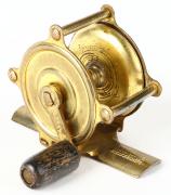 Unmarked wood/brass fly reel, English circa 1890's, dual handle... |