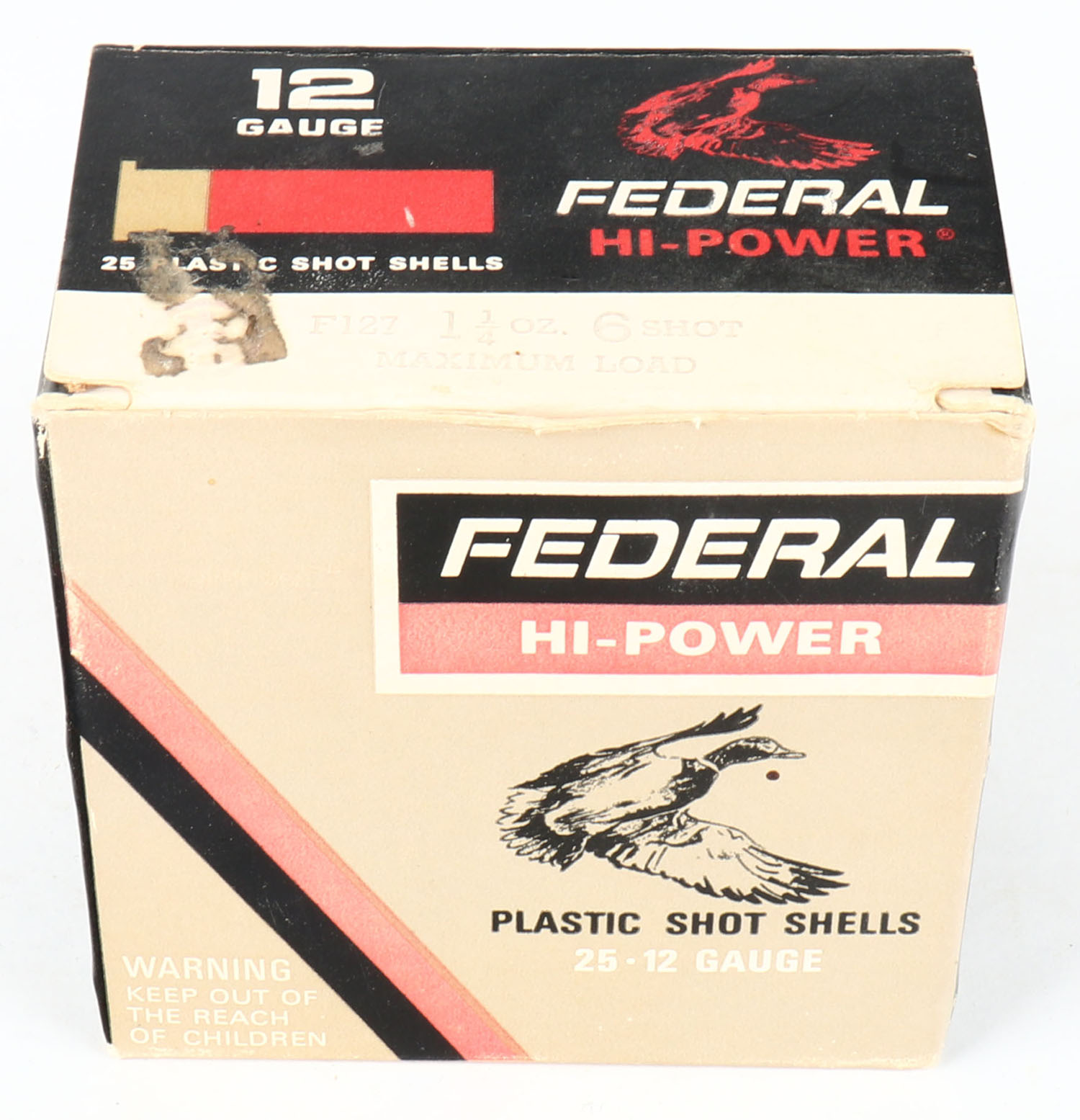 Federal, Hi-Power, 12ga., 2 3/4'', 1pc., Full, shot size 6 Maximum Load, multi-colored box, box is solid, plastic shells are excellent. Grade: Very Good ++ - Value: 10 to 30