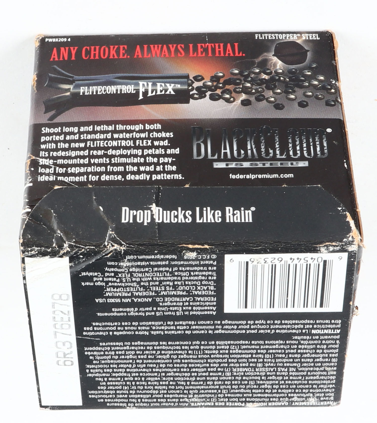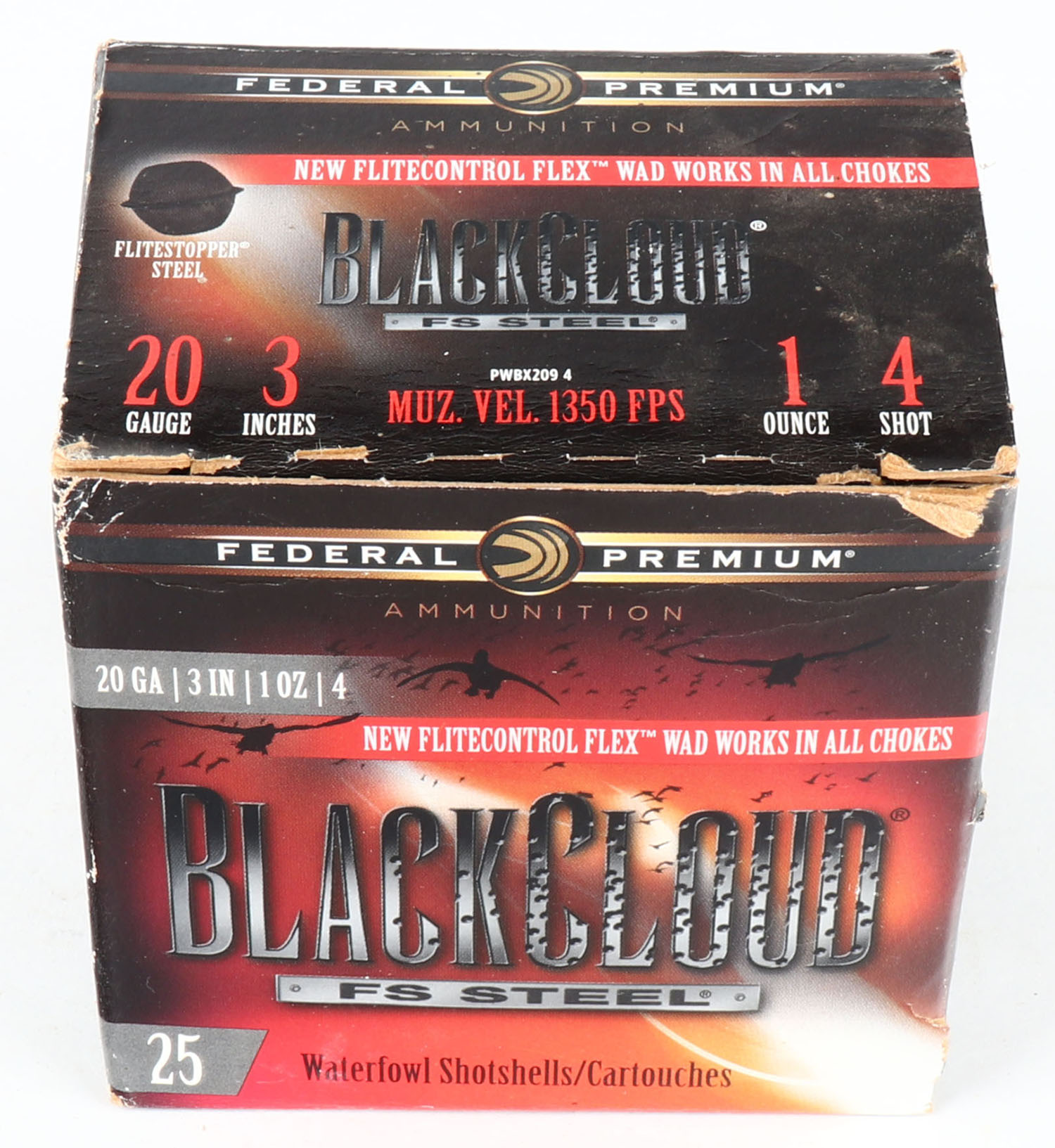 Federal, BlackCloud, 20ga., 1pc., Full, shot size 4, 3'', multi-colored box, box is very solid, plastic shells are excellent. Grade: Very Good ++ - Value: 10 to 30