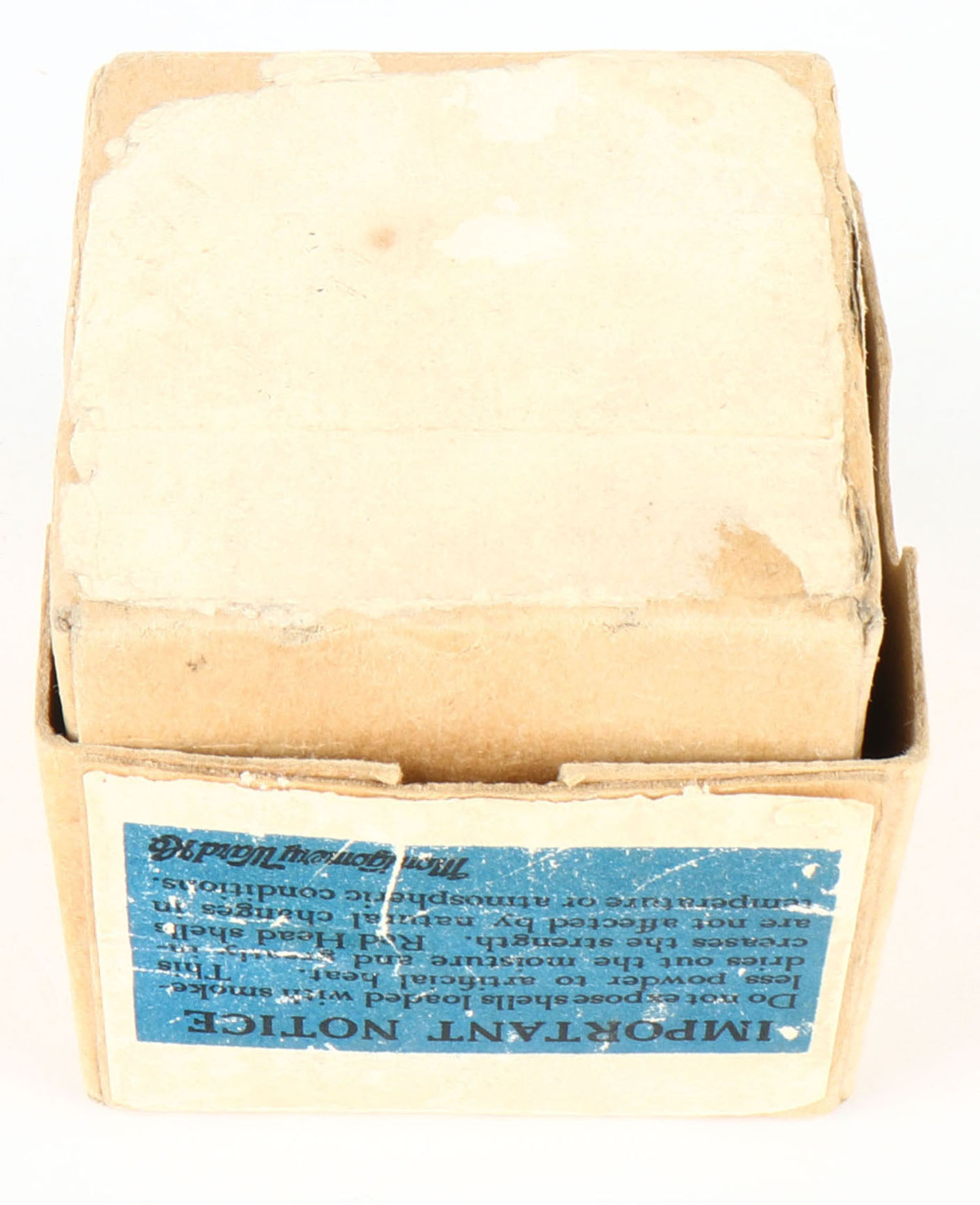 Montgomery Ward & Co., Red Head, 410ga., 2pc., Partial 16rds., 2 1/2'', shot size 9Ch., Paper Shells, buff box with multi-colored scene & two geese flying, label has been professionally restored, box has some age soiling with edge wear, paper shells are very good. Grade: Very Good ++ - Value: 100 to 500