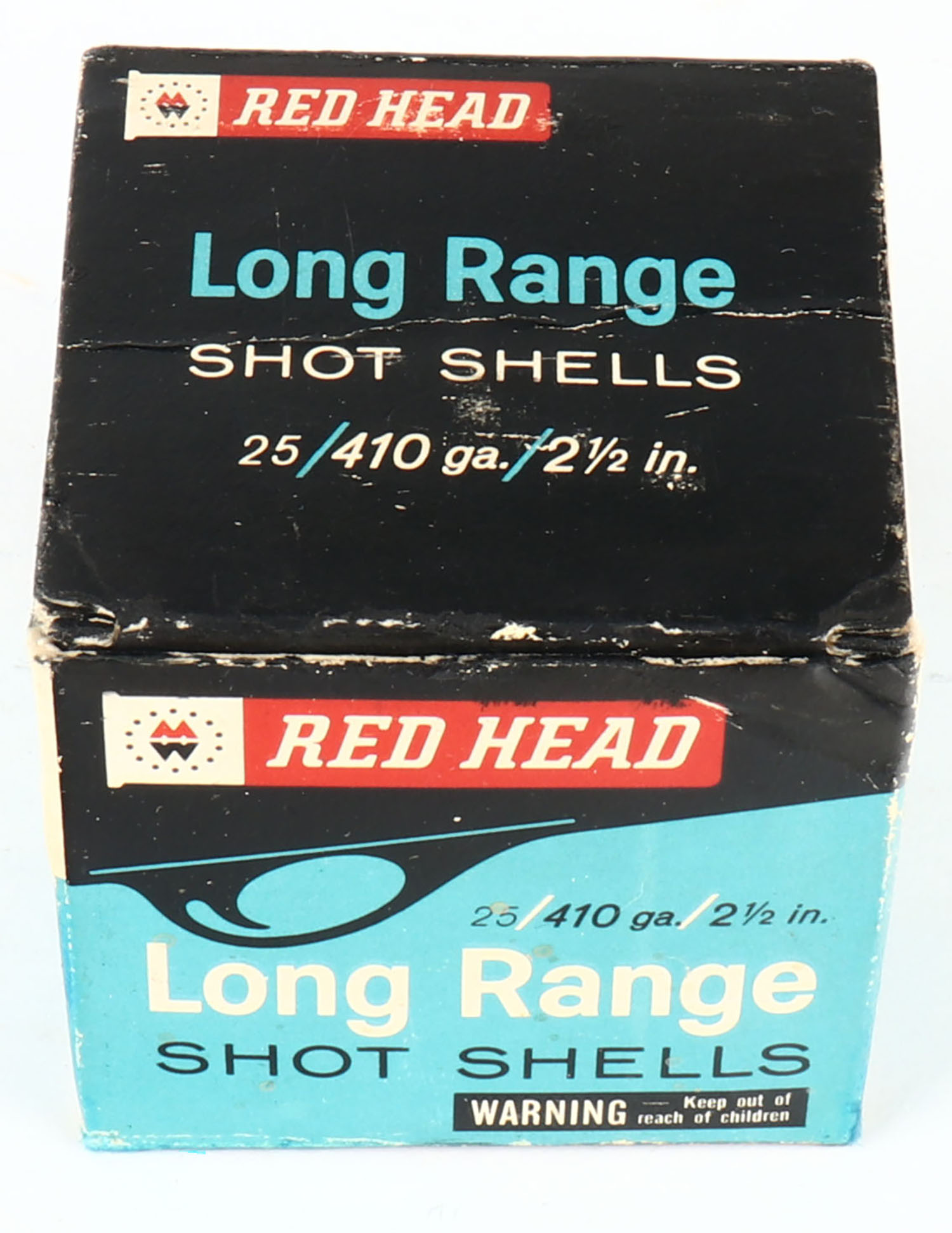 Wards Hawthorne, Long Range Shot Shells, 410ga., 2 1/2'', 1pc., Full, shot size 7 1/2, box has light scuffing with nice colors, paper shells are excellent. Grade: Excellent - Value: 10 to 30