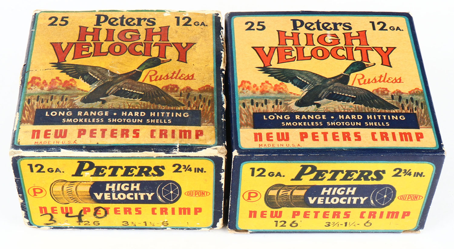 Lot of 2 Peters, 12ga., 1pc., Appears Full, shot size 6, multi-colored boxes, boxes are solid. Grade: Very Good ++ - Value: 20 to 60