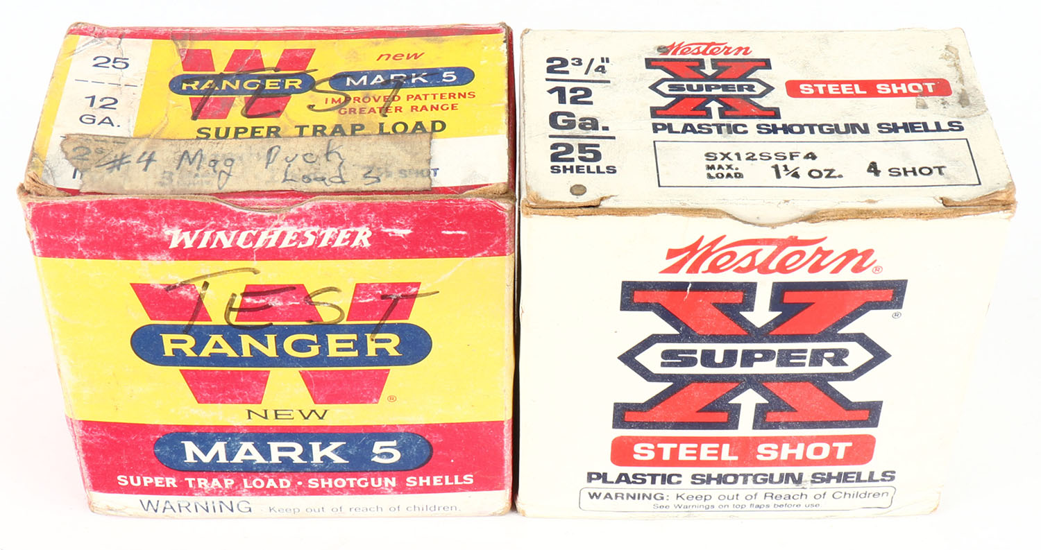 Lot of 2, Mixed Manufacture, 12ga., Appears Partial, shot size 4 & 5, Shotshell boxes. Grade: Good ++ - Value: 10 to 30