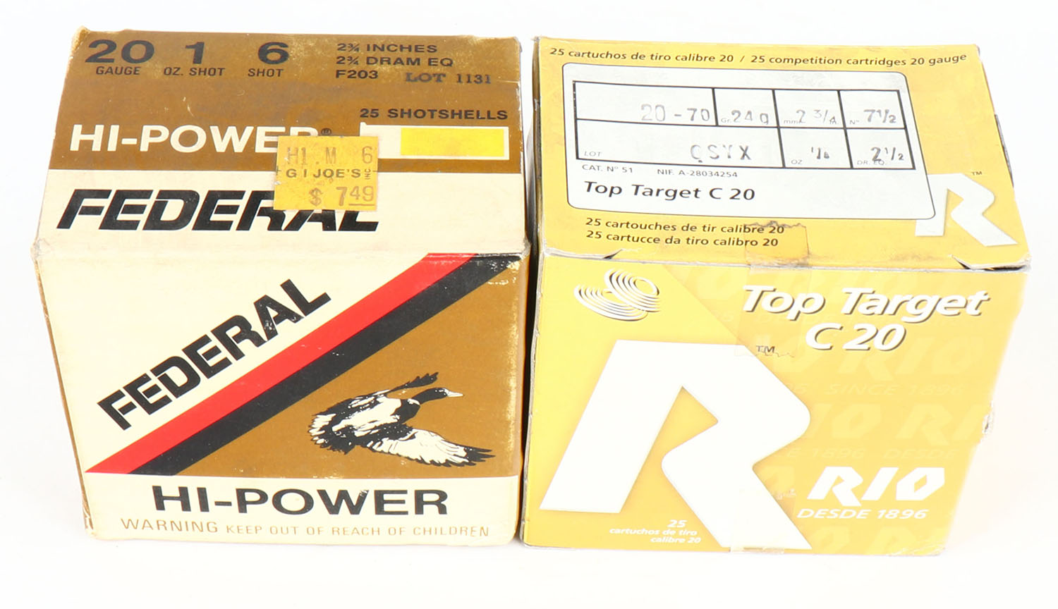 Lot of 2, Mixed Manufacture, 20ga., Appears Full, shot size 6 & 7 1/2, Shotshell boxes. Grade: Very Good - Value: 10 to 30