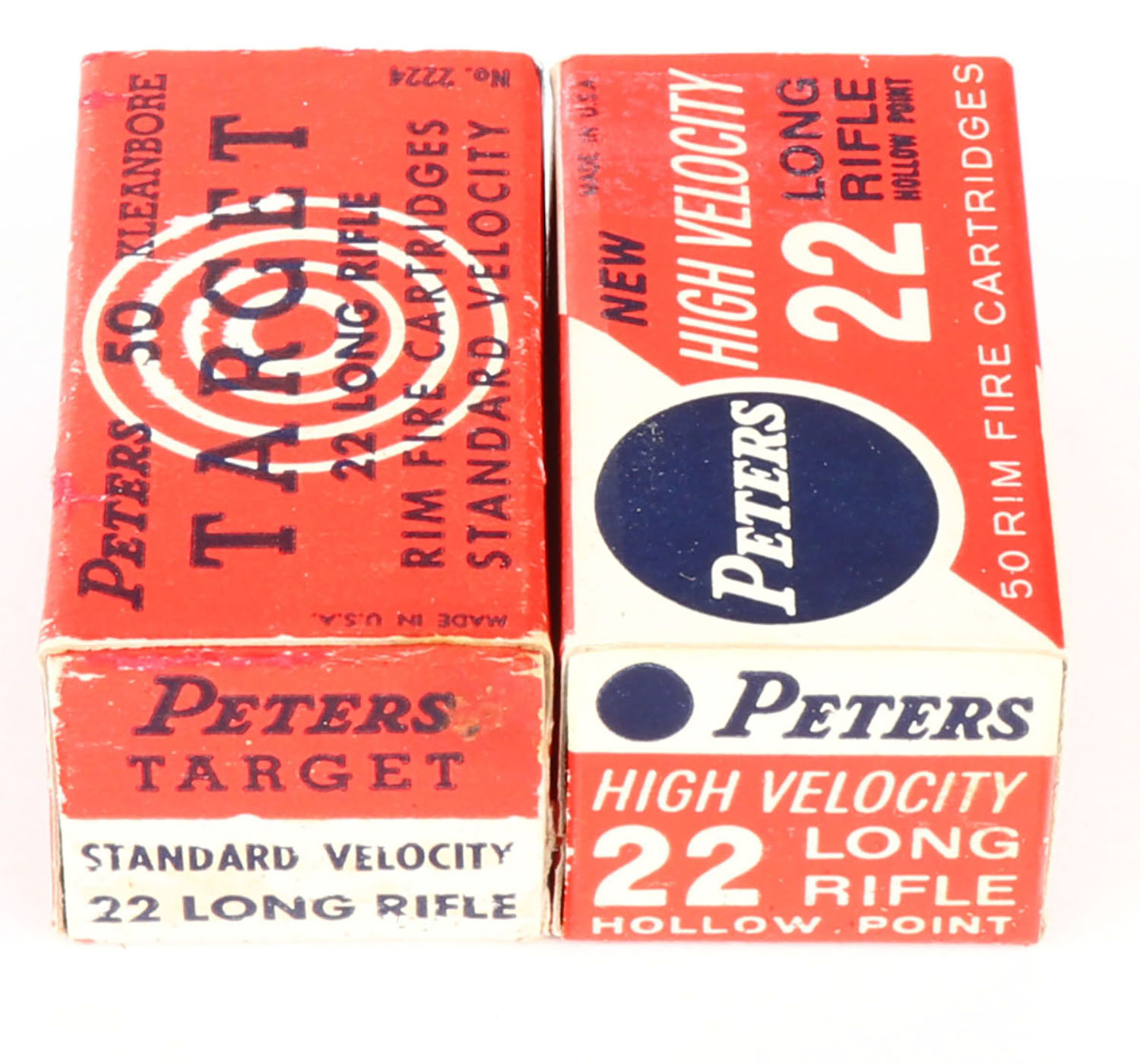 Peters, lot of (2) boxes, (1) box appears full, High Velocity box is full of incorrect ammo. Grade: Excellent - Value: 10 to 15