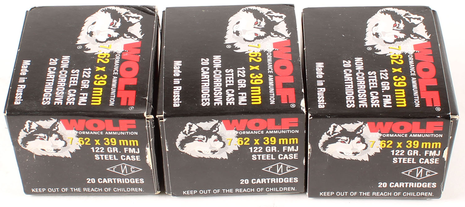 | Wolf, Lot of (3), 7.62x39mm, 122 Grain FMJ Steel Case, Full, 1pc...