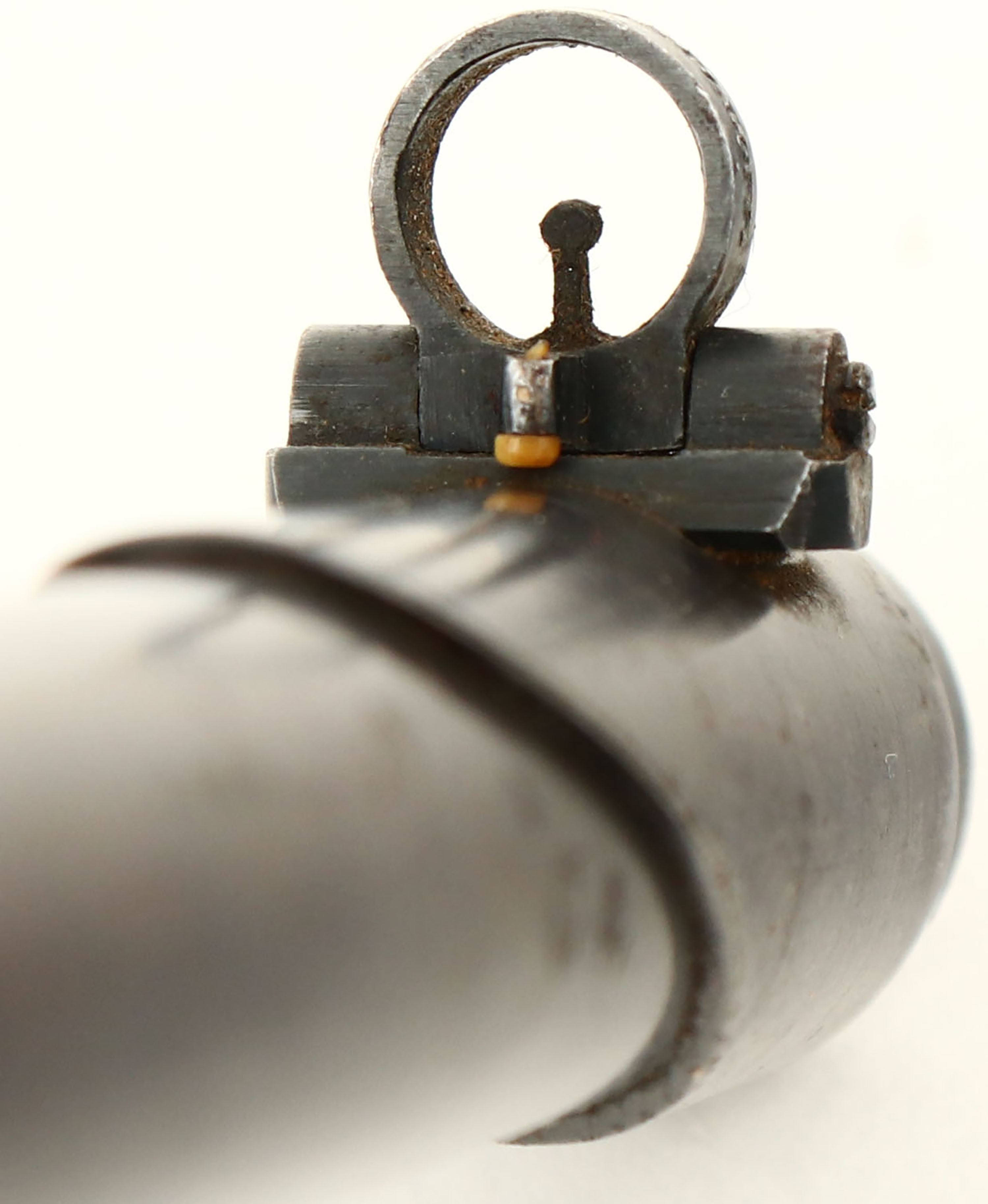 Winchester, Model 1892 Custom Built, CAL: .357 Mag, MFG: 1903, SN: 224055, Lever Action Rifle, 19'' Round Barrel, 3/4 mag. The original wood stock is very good, after having been lightly sanded & refinished. There is a resin repair to the lower left side corener of the wrist. The forearm is excellent, with excellent original finish. Both the stock & forend have minor handling marks, scapes & contusions. The barrel & mag tube are custom replacements, with the barrel stamped 357, no roll stamp. The metal blue finish rates 70% overall. The rifle carries a side mounted Lyman 55C receiver sight, while the barrel carries a Redfield blank filled rear dovetail & a folding globe front sight. Bore is excellent. Metal crescent buttplate. Tight smooth action. A very nice custom built 357 caliber carbine. FFL or C&R Req. - Value: 400 to 800