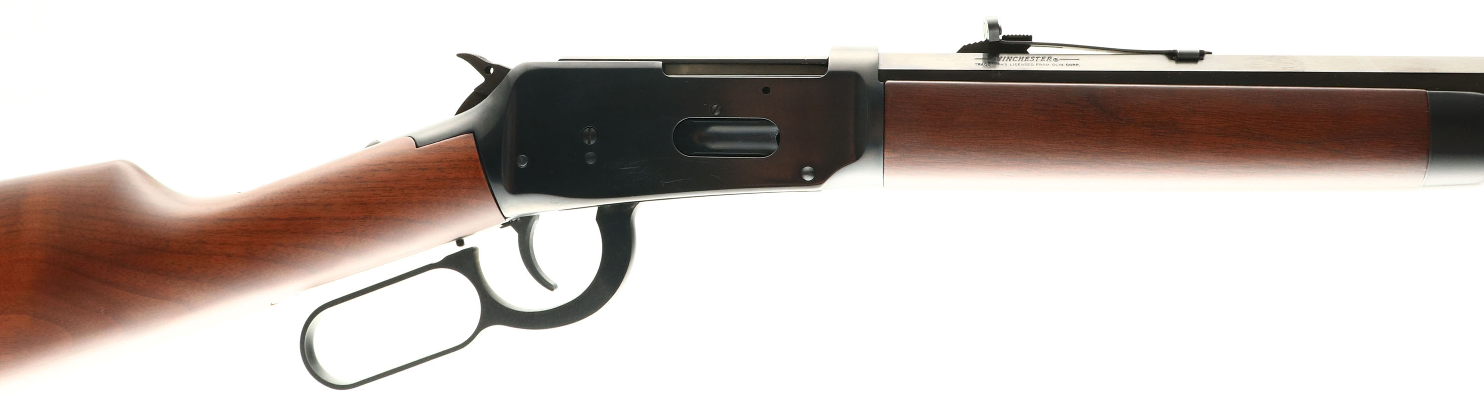 Winchester Model 94 Short Rifle, CAL: 357 Mag, MFG: 1990's, SN: 6548344, Lever Action Rifle, 20'' Octagon barrel, Full mag. The original straight grip wood stocks are excellent, with just a few tiny handling marks to the excellent original finish. The original metal blue finishes are 99% overall, with a few thin brushline scratches to the receiver. Bore is excellent. Barrel holds an adjustable rear elevator sight & elongated blade front sight. Buttstock carries a smooth, crescent metal buttplate. This firearm is almost new, excellent ++ overall. FFL Req. - Value: 800 to 1200