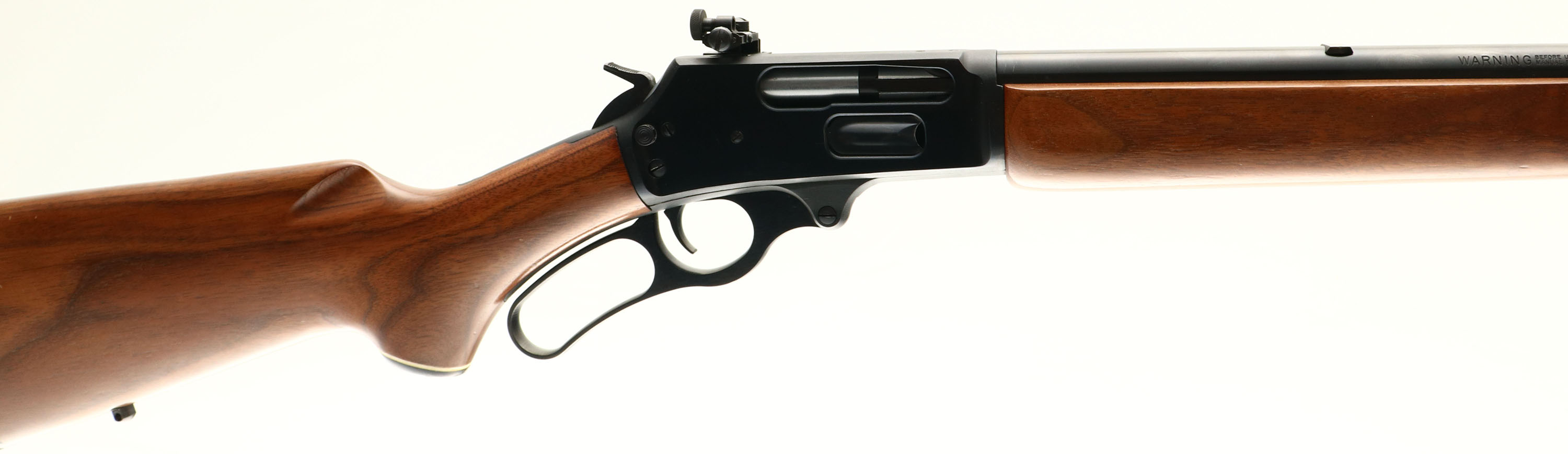 Marlin, Model 1895SS, CAL: .45-70 Gov'T, MFG: Modern, SN: 11010982, Lever Action Rifle, 21 7/8'' round barrel, 2/3rd mag. Post 1984 crossbolt safety MFG. The original smooth capped pistol grip wood stocks are excellent, with a few minor scratches or contusions to the excellent original finish. The original metal blue finish rates 98% overall. The receiver carries a Lyman side mounted adjustable sight, while the barrel carries a blank filled rear dovetail & ramp elevated blade front sight. Bore is excellent & bright. Stock carries the original Marlin solid rubber buttplate. Factory trademark bullseye in belly of the stock. Sling studs. An original & overall excellent rifle. FFL Req. - Value: 800 to 1200
