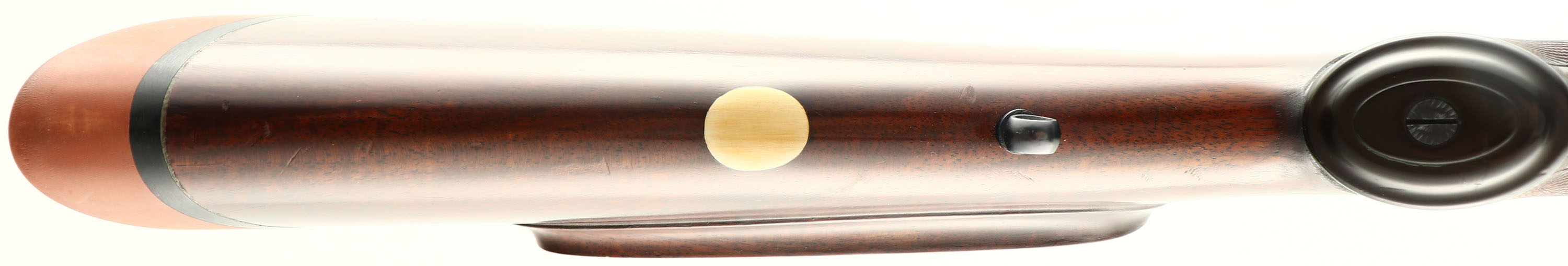 FANTASTIC CASED MANTON & CO., Model Hammer Underlever Sidelock Double Rifle, CAL: 10-BORE, MFG: Antique, SN: 5673, Lever Break Double Shot Rifle, 26'' SxS fluid-steel barrels, with solid flat matted rib, 1 standing & 2 folding platinum-lined express sights engraved for 100, 200 & 300 yards. English walnut stocks, with lever-release splinter forend, bakelite pistol grip cap, classic point-pattern checkering, beaded pancake cheekpiece, sling eye, & vacant initial oval. Finish & condition is excellent with very few handling marks. Border-engraved, case-hardened receiver & sidelocks, with Jones underlever, rebounding locks & no separate safety catch. Case-colors remain vivid. 97% coverage of the rich bluing on carrels. London black powder proved. Tight & with excellent bores. Sling eye, & doll's head extension. 14 3/8'' pull from front trigger to the end of the Silvers red rubber recoil pad. Weight: 14lbs, 5oz. Comes stored in period canvas wrapped trunk case, with brass corners, maker's label & innumerable loading accessories. Investment grade & highly collectible double rifle. An overall excellent & collector/investment grade hand crafted rifle. Antique, No FFL Req. - Value: 10000 to 15000