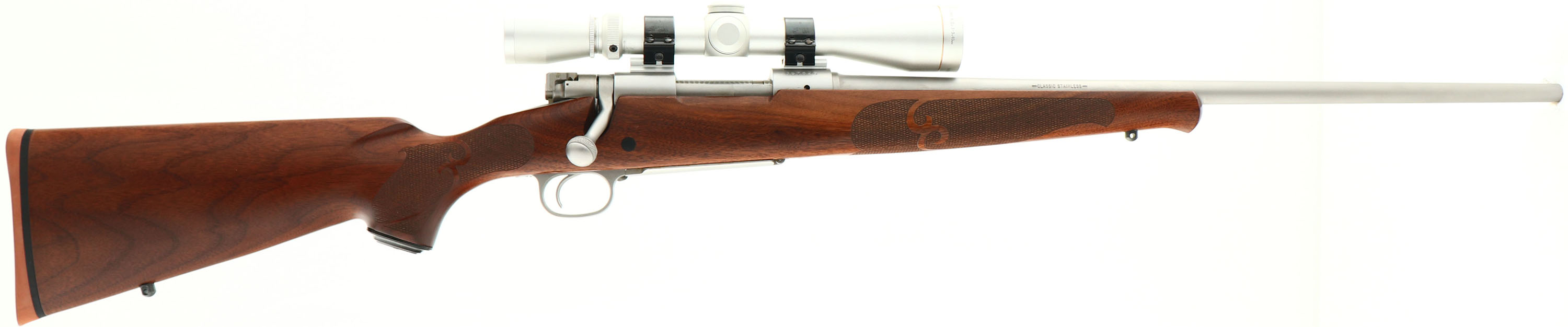 Winchester, Model 70 SA Classic Stainless, CAL: 243 WIN, MFG: 1992-2006, SN: G67626, Bolt Action Rifle, 21 3/4'' barrel. The original checkered & capped pistol grip wood stock is excellent, with few tiny handling marks to the excellent original finish. The stainless steel metal finish rates 100% overall. Bore is excellent & bright, with sharp rifling. Rifle is mounted with a Leupold Vari-X 3-9X40mm matching scope, with no open sight provisions. Buttstock carries a Winchester solid rubber recoil pad. Jeweled bolt. Sling stud. An excellent Model 70 Classic Stainless.* FFL Req. - Value: 1000 to 1400