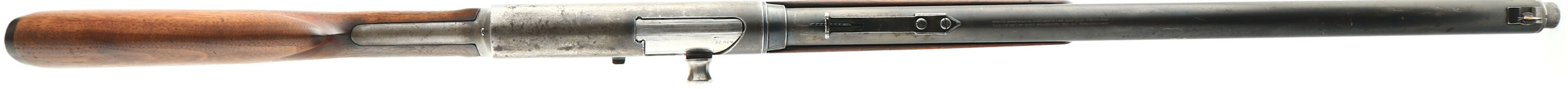 Remington, Model 8, 32 REM CAL, MFG. 1911, SN: 25610, Semi-Auto Rifle, 22'' barrel. The original round knob pistol gripped wood stocks are very good & solid. Much of the the original wood finish has worn or flaked away, particularly at the carry points. There are minor scrapes, ding & contusions to the wood. The original metal blue finish rates 40% on the barrel, while the receiver has worn mostly gun metal gray, with maybe 15% of thinned toning blue remaining in more protected areas. The barrel has standard adjustable rear sight & elongated front blade sight. Bore is good, but with some roughness amongst strong rifling. Stock carries the Remington plastic buttplate, which has broken in several places & been glue assembled, a couple of missing edge chips & a small internal piece missing. 5 rd fixed magazine. The right sidee of the barrel collar has a ''RB'' stamped inside a circle. The barrel has a couple of small contusions. A well used hunting rifle, but with lots of hunting life remaining. FFL or C&R Req. - Value: 400 to 800