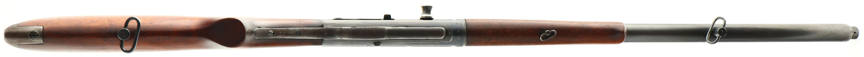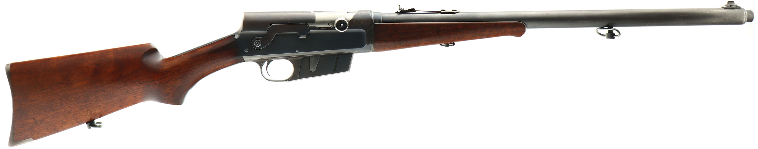 Remington, Model 8, 30 REM CAL, MFG. 1928, SN 56684, Semi-Auto Rifle, 22'' barrel. Straight grip stock are most often found in the early & mid production years, with the round knob becoming more in vogue in the 1910-20's & finally the flat knobs becoming more popular in the late 20's & early 30's. This example is from the late 20's. The original flat knob pistol gripped stocks are excellent stocks. There are very few minor scratches & contusions to the original finish, with some thinning at the belly of the stock & carry points. There are small missing chips in 3 of the 4 corners of where the stock wrist meets the receiver. The original metal blue finish rates 70% overall, with the finish toning a bit gray/plum as it thins, mostly on the receiver. The barrel is fitted with standard ajustable rear & a Lyman front blade sight. Bore is excellent, very bright & clean. Stock carries the popular serrated, bottom tang Remington crescent metal buttplate. 5 rd fixed magazine. Sling loops in the stock & barrel. A high quality rifle, with the popular flat knob stock. FFL or C&R Req. - Value: 700 to 1200