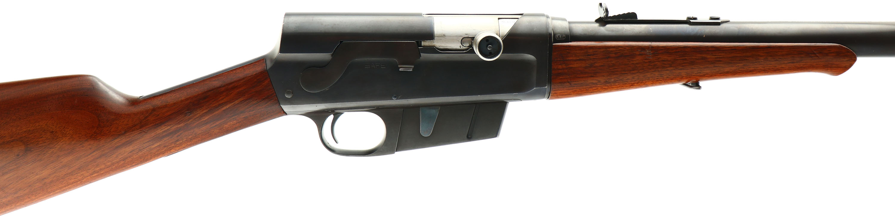 Remington, Model 8, .35 Rem Cal, MFG. 1923, SN: 47545, Semi-Auto Rifle, 22'' barrel. The original straight grip & schnabel forend stocks are excellent. There are a few minor handling marks scratches & contusions to the excellent original finish. The original metal blue finish rates 95% overall. Bore is excellent. The barrel carries a standard adjustable rear & blade front sights. The stock carries a Remington UMC smooth crescent metal buttplate. 4 round fixed magazine. Tight action. An overall excellent & high original condition rifle. FFL or C&R Req. - Value: 1000 to 1500
