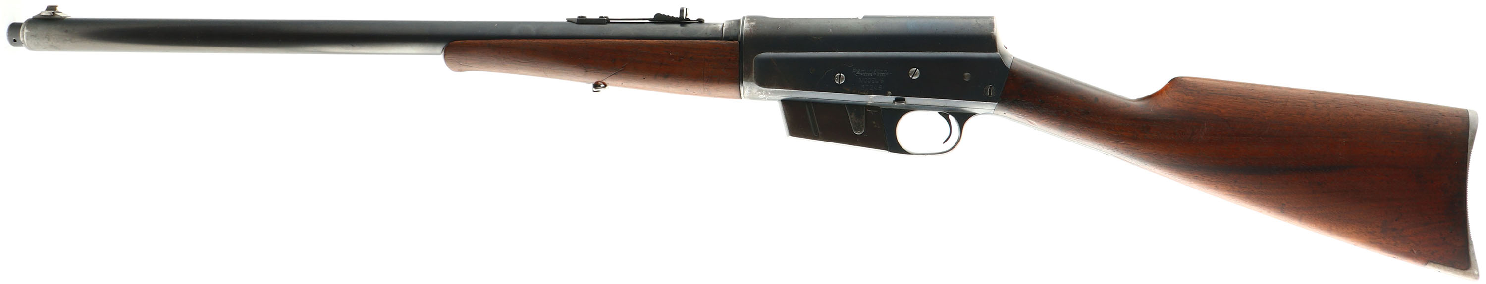 Remington, Model 8, .32 Rem Cal, MFG. 1934, SN: 67248, Semi-Auto Rifle, 22'' barrel. The original straight grip & schnabel forend stocks are excellent, with both carrying the original finish. There are several minor scuffs, scratches & contusions to the wood & finish, with the finish stating to thin. There is a small 1'' crack repair to the back of the forend, that used a spot of fill in the repair. The original metal blue finish rates 80% on the barrel, 70% on the receiver, with the mag showing more loss. Bore is excellent. The barrel carries a Marble's adjustable rear sight & small blade front sight. Stock carries the popular bottom tang, serrated crescent metal buttplate. 5 round fixed magazine. Tight action. Overall, a very nice & original rifle. FFL or C&R Req. - Value: 700 to 1000