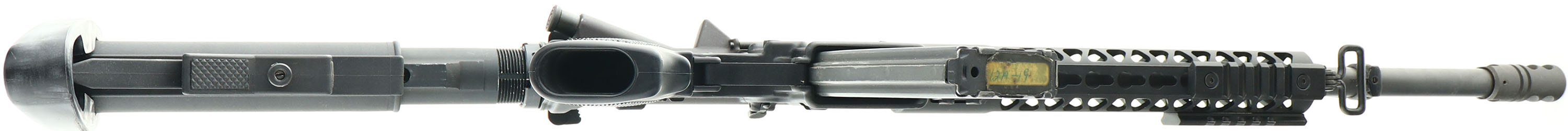 Superior Arms, S-15, CAL: .300 Blackout, MFG: Modern, SN: 005798, Semi Auto Rifle, 16'' barrel, 17 1/2'' with muzzle break. The synthetic checkered pistol grip & 6pt telescoping stock are excellent. The 10'' octagon key-mod handgaurd is excellent, with 10'' picatinny rail on top & 3 1/2'' rails on the bottom & left side. The matte black finish rates 99%overall. Bore is excellent. The receiver carries the fixed A1 carry handle, with height adjusting rear sight. A2 style front sight gas block assembly. Sling loop. 30rnd steel mag. FFL Req. - Value: 400 to 800