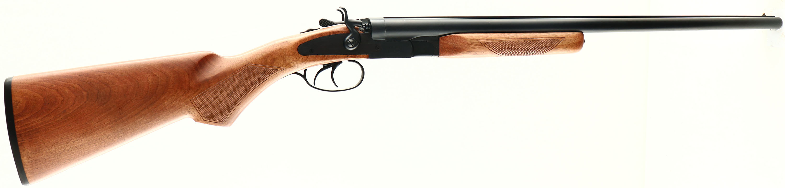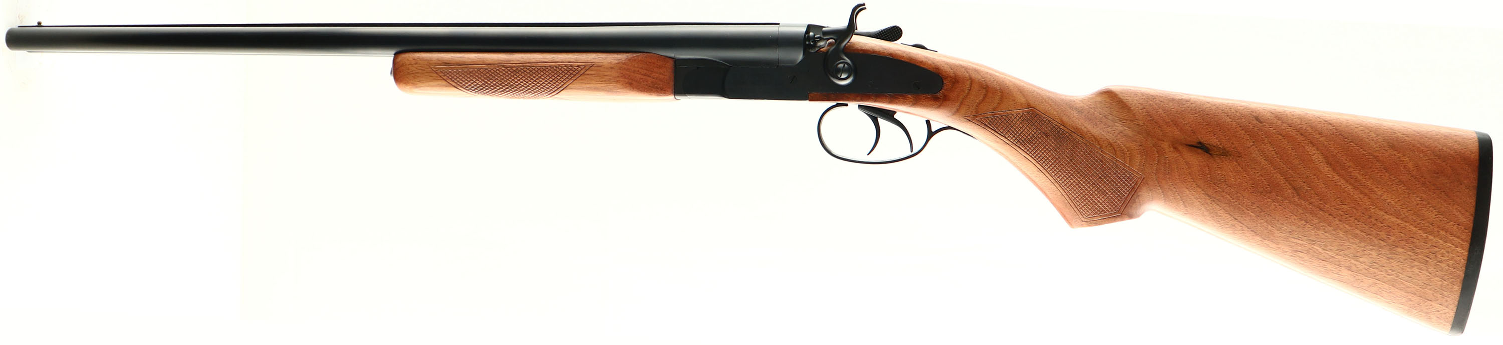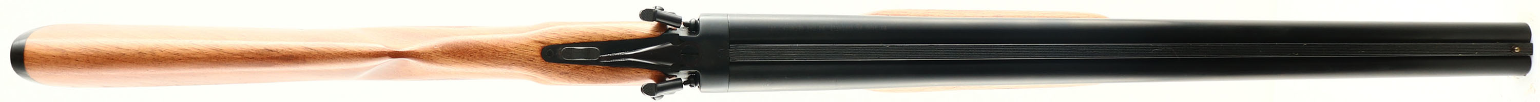 Jing (China), Model SPM-410, CAL: 410GA, MFG: Modern, SN: 9004276, Break Action SxS Shotgun, Choke: Cyl/3'' Chamber, 20'' barrels. Standard factory markings. The original checkered wood stocks are excellent. Blank sling stud provision in belly of stock. The original metal blue finish rates 97% overall. There are two blank screw holes in the bottom rib for sling stud. Bores are excellent. Solid rib carries a bead front sight. Stock has solid black hard rubber recoil pad. LOP: 14 1/2''. FFL Req. - Value: 200 to 400