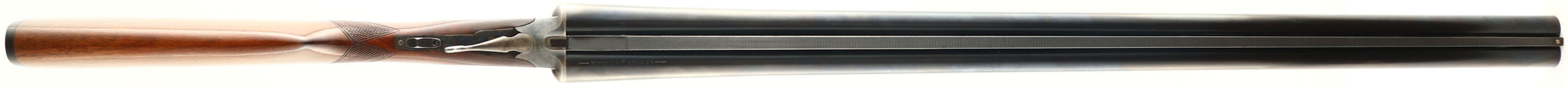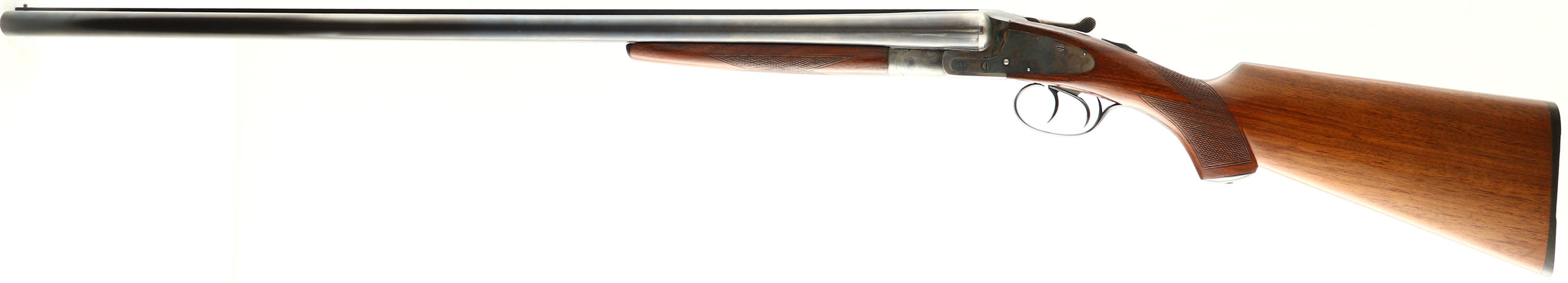 L.C. Smith, Field Grade, CAL: 12GA, MFG: 1945/46, SN: 205745, Break Action SxS Shotgun, Choke: F/MOD,30'' barrels. Standard factory markings on the frame & barrel. The original checkered flat pistol grip stock is excellent. The original finish is excellent. The original blued finish on the barrel rates 80-85% coverage, with thinning at the carry/handling points. The case-hardened frame retains nice case-colors, with concentrated wear to the bottom of the frame (carry point). Bores are excellent. The solid matted rib holds single front bead. Stock carries a grooved plastic buttplate. LOP: 14 1/8'', DAH: 2 1/3'', DAC: 1 3/8''. An excellent example of a late war-time/ early post-war shotgun. FFL or C&R Req. - Value: 400 to 800