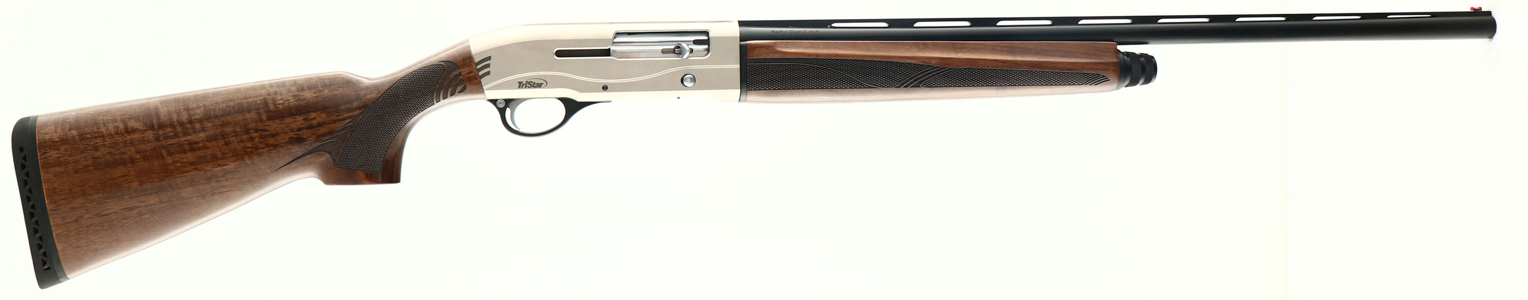 TriStar, Model Raptor Walnut, CAL: 12 GA, MFG: Modern, SN: KRA084033, Semi-Auto Shotgun, Screw-in choke tube, with a MOD choke installed, 3'' Chamber, 26'' Ventilated barrel. The original checkered & flat pistol grip wood stocks are excellent, with few tiny handling marks to the original finish. The original metal blue finishes on barrel rates 98%. The satin silver receiver, rates excellent. Bore is excellent. Red bar fiber optic sight on the matted rib. Buttstock carries the original ventilated recoil pad. LOP: 14 1/8'' overpad. Excellent overall, FFL Req. - Value: 250 to 400