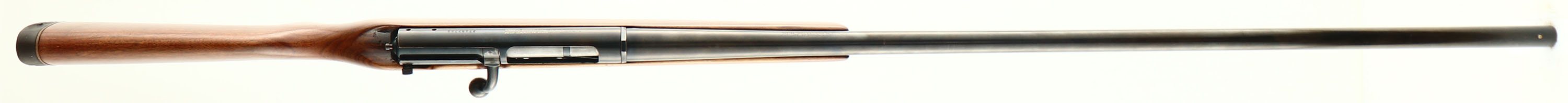 Marlin Firearms Co., The Original Marlin Goose Gun (Model 55), CAL; 12GA, MFG: 1962-96, SN: 27432799, Bolt Action Shotgun, 36'' barrel. Standard markings on barrel & receiver. The original flat pistol grip wood stock is excellent, having been sanded & refinished. The blued finish on the barrel is a mix of original blue & brown patina, with some marks worn to metal gray. Gold tone trigger. Bore is excellent. Single bead front sight. Stock has ventilated black rubber recoil pad. Sling studs. Detachable 2-round mag. FFL Req. - Value: 300 to 450