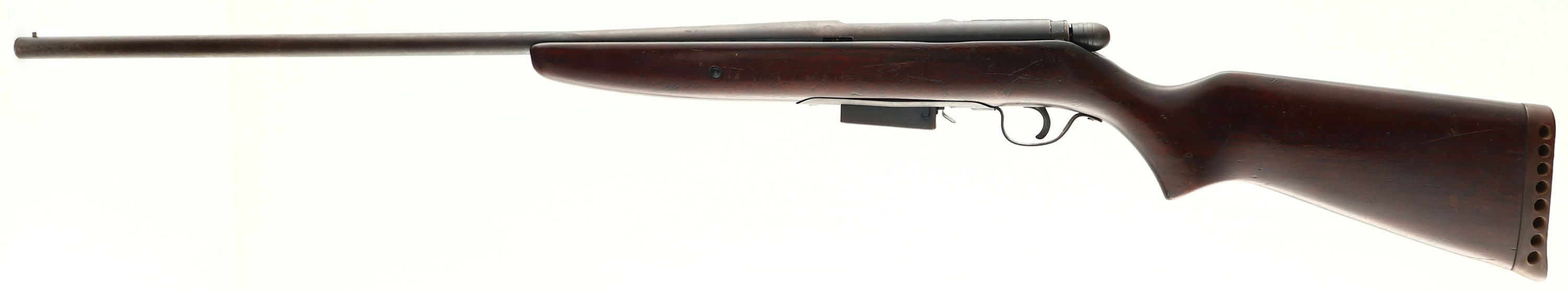 Hi-Craft (Kessler Arms Corp), Model 326 FR (30C), CAL: 20 GA, MFG: 1950's, SN: NONE, Bolt Action Shotgun, Choke: Full 2 3/4'', 26'' barrel. The flat pistol grip wood stock is very good, with many contusions, nicks & surface scrapes. The metal blue finish rates 70% overall, Bore is excellent. The barrel holds a single front bead. Buttstock carries an unmarked ventilated recoil pad. FFL or C&R Req. - Value: 100 to 200