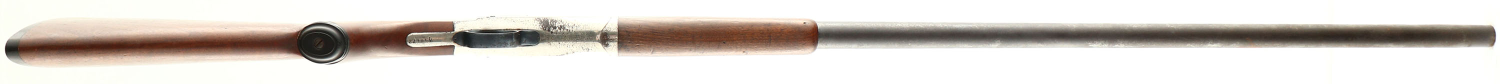 Belknap Hardware Co., Nitro Hunter, CAL: 12GA, MFG: 1890's-1930's, SN: A58472, Break Action Single Shot Shotgun, 36'' barrel. The capped pistol grip wood stocks are excellent. There are contusions & dings, mostly to the forend. The metal blue finish on the barrel has fully toned to a brown patina with consistent pitting throughout & the nickel finish on the receiver rates 60-70%, with consistent spotting throughout, toned to a brown patina. Bore is excellent. Brass bead front sight. Grooved plastic buttplate. FFL or C&R Req. - Value: 50 to 150
