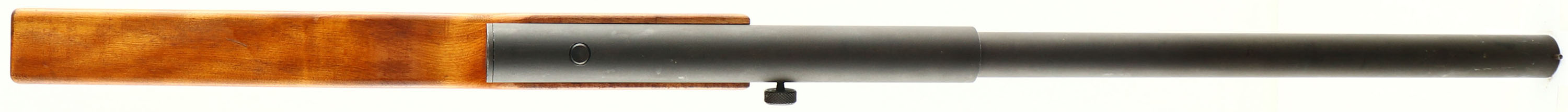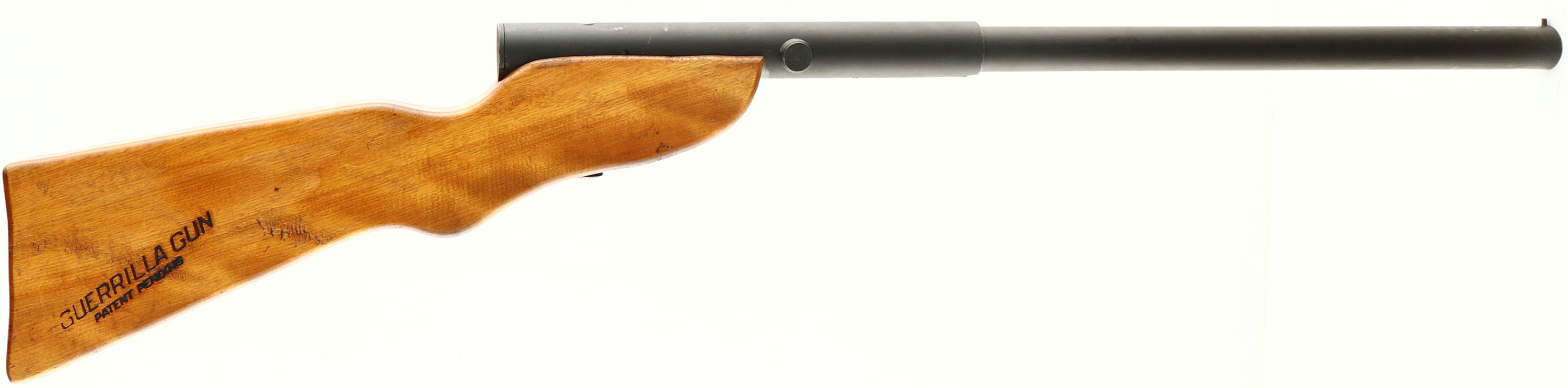 Richardson Industries, Guerilla Gun, CAL: 12GA, MFG: Pre 1968, SN: NONE, Slam Fire Shotgun, 23'' barrel. The left side of the stock is marked ''RICHARDSON INDUSTRIES IN EAST RIVER CONN U.S.A'' & the right side is marked ''GUERILLA GUN PATENT PENDING''. No markings on the metal. The wood stock is very good & solid. The matte finish on the barrel/receiver rates 85%. Bore is good, with consistent roughness. Post front sight. No buttplate. Based on the design of Philippine homemade fighting shotguns, these guns were introduced to the market following World War II, but never caught on. FFL or C&R Req. - Value: 400 to 800
