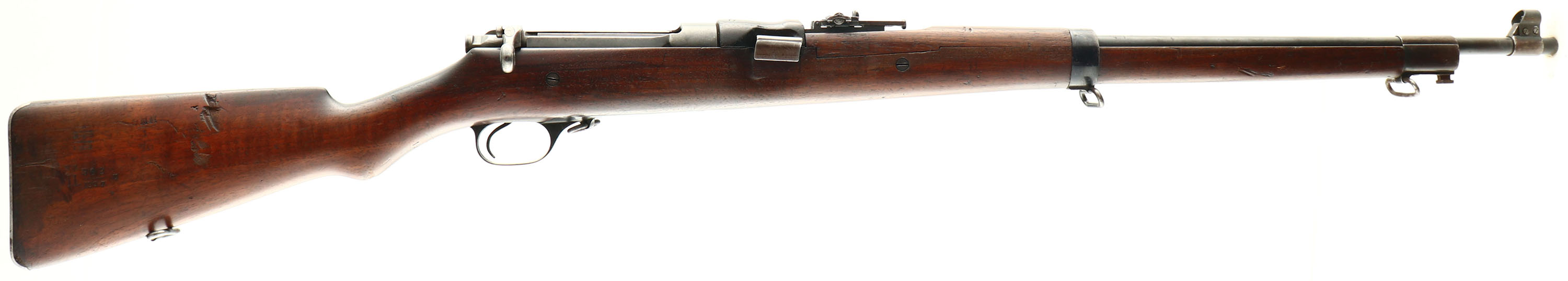 CONDITION: The semi-pistol grip walnut stock is very good with small nicks, dings, & scratches from use/wear. One larger chip in wood on the right cheek. The top of the wrist has darkened from hand oils. The bottom of the wrist is marked with two faded Canadian proofs, US flaming bomb, ''US'' & the S/N. The right cheek of stock is marked with line out regiment & unit markings that read ''A'', ''RCD'', ''131'', (RCD for the Royal Canadian Dragoons). A worn roundel cartouche that's reads ''QUEBEC'' on the bottom & ''D'' arrow ''C'' in the middle; the markings on the top of the roundel are illegible. To the right of the Roundel is the markings ''3*'' over ''II.'', ''362/1907'', ''U''. Further right of those markings are ''9MH/1'', ''2/13''. The S/N & MFG date for Ross rifles was stamped onto the stock & not on the metal. The blued metal finish on the barrel rates 80% with spots of thinning/ toning brown & scattered brown patina. The blued finish on the receiver has mostly worn away exposing gun gray & is starting to tone brown. some blue remains in protected areas. Thinned remains of case-hardened finish on the bolt. The left side of the receiver is marked ''ROSS RIFLE CO QUEBEC.CANADA.1905.'', ''PATENTED''. The rear of the bolt channel is marked with a worn crown proof. The bolt handle marked ''4392'' & with a couple proofs, & the bolt head is marked ''5202''. The bore is very good. Its bright & shiny with light roughness throughout. The barrel holds a hooded, square post front sight with a V-notch/aperture, flip up ladder rear sight. The stock carries a steel trapdoor buttplate. Has worn gray with spots of patina. Nothing inside trapdoor. Rifle has four sling swivels. FFL or C&R Req - Value: 1200 to 2400