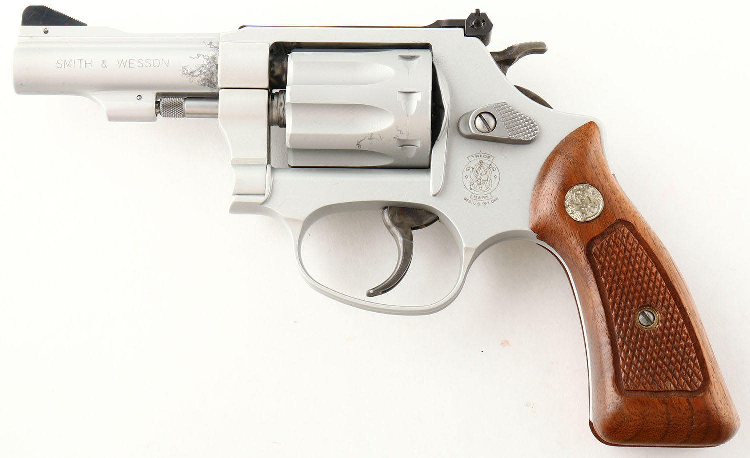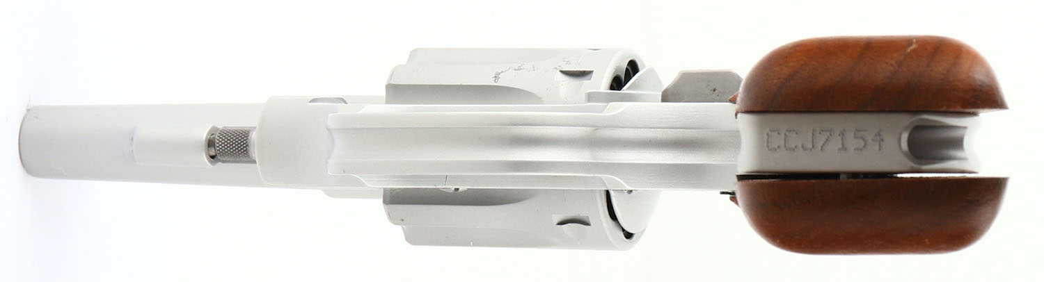 Smith & Wesson, Model 317-1, CAL: 22LR, MFG: Modern, SN: CCJ7154, Double Action Revolver, 2 7/8'' barrel. The replacement S&W medallion checkered wood grips are excellent. The matte silver finish is very good, with scrapes concentrated to the left side of the barrel & cylinder. Bore is excellent. Adjustable rear sight & elevated blade front sight. Comes with original checkered rubber grips. FFL Req. - Value: 400 to 600