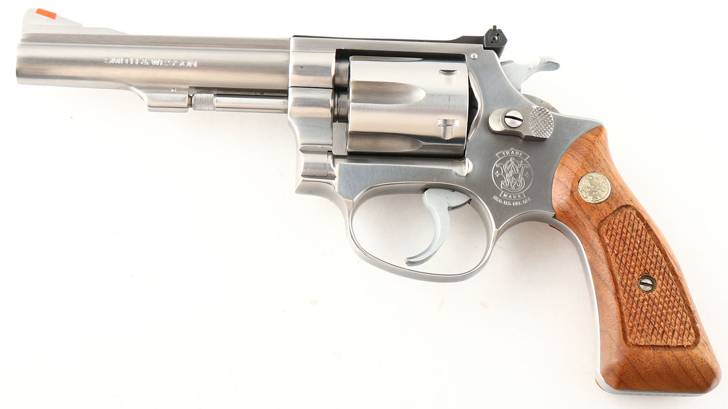 BOXED, Smith & Wesson, Model 651, CAL: 22 RF MAG, MFG: Modern, SN: ABD3964, Double Action Revolver, 4'' barrel. The S&W logo medallion checkered wood grips are excellent. The stainless steel finish is excellent. Bore is excellent. Adjustable rear sight & elevated serrated blade front sight with orange insert. Comes in factory SN matching box, with related paperwork, cleaning rod/tips & wax paper. FFL Req. - Value: 800 to 1300