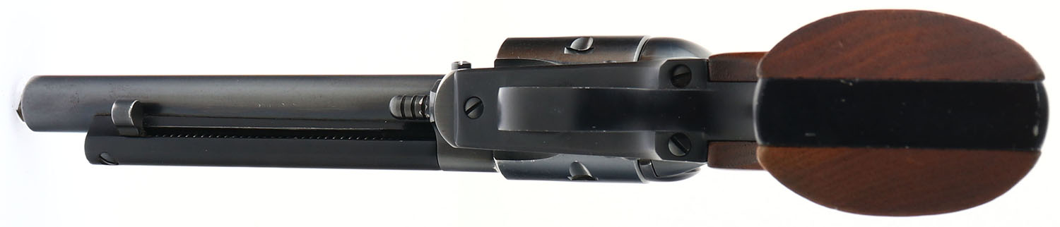 Ruger, Single-Six, CAL: 22LR, MFG: 1971, SN: 21-07847, Single Action Revolver, 5 1/2'' barrel. The top of the barrel is marked with the standard address stamp. The left side of the frame is marked in two lines ''RUGER .22CAL/ SINGLE SIX'' & Ruger Pheonix logo. The right side of the frame has the full SN. The Ruger logo medallion wood grips are excellent. The original metal blue finish rates 97% on the barrel & 99% on the frame. Bore is excellent. Fixed square notch rear sight & round blade front sight. Comes with .22 MAG cylinder in red velvet pouch. FFL or C&R Req. - Value: 300 to 450